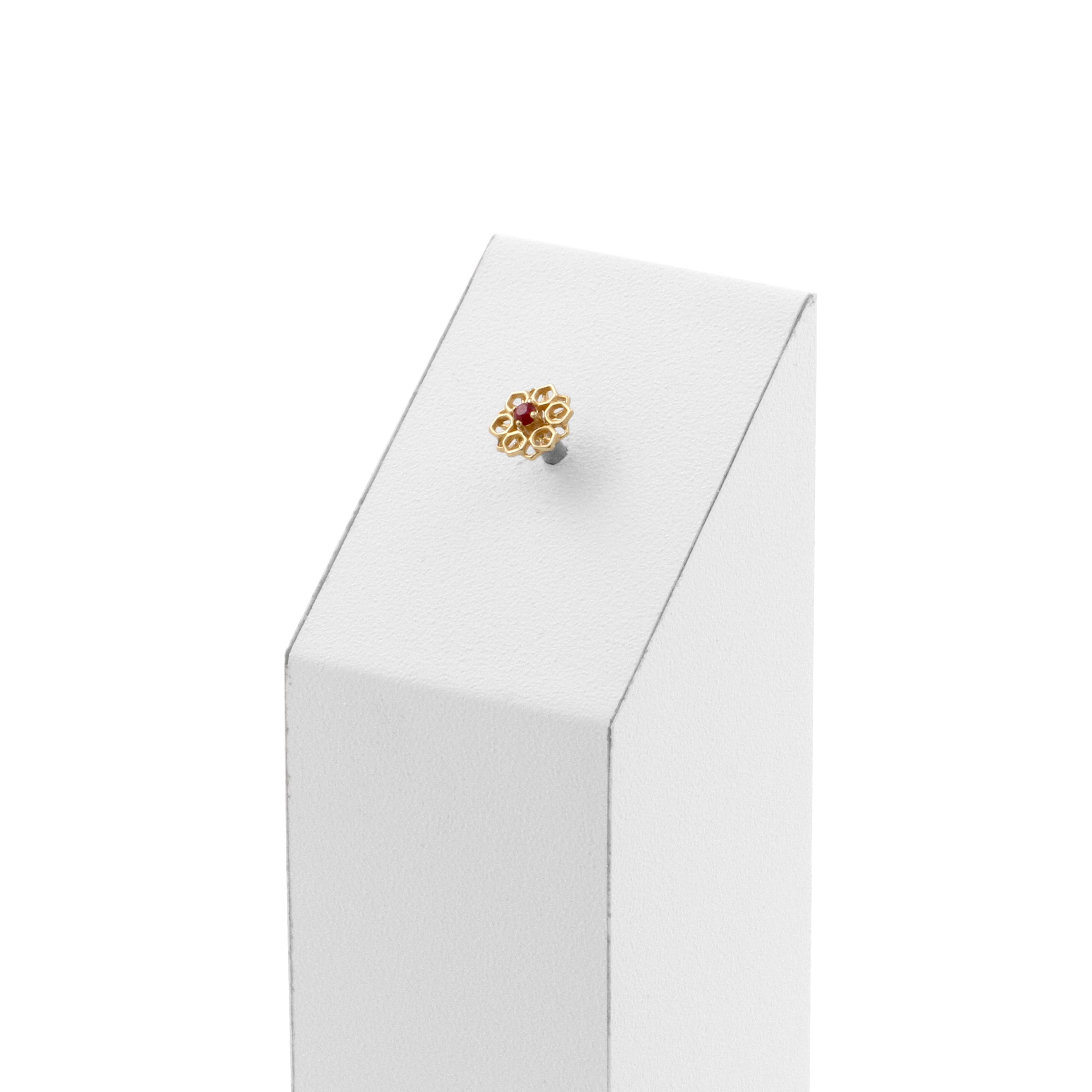 14 Karat Gold Flower Ornament With Ruby instantly adds a stylish touch to your piercing. This Threadless Top is made of 14 Karat Gold. The threadless system allows you to easily combine this top with all our bars, which we call Threadless Base, for a perfect fit and ultimate comfort.
