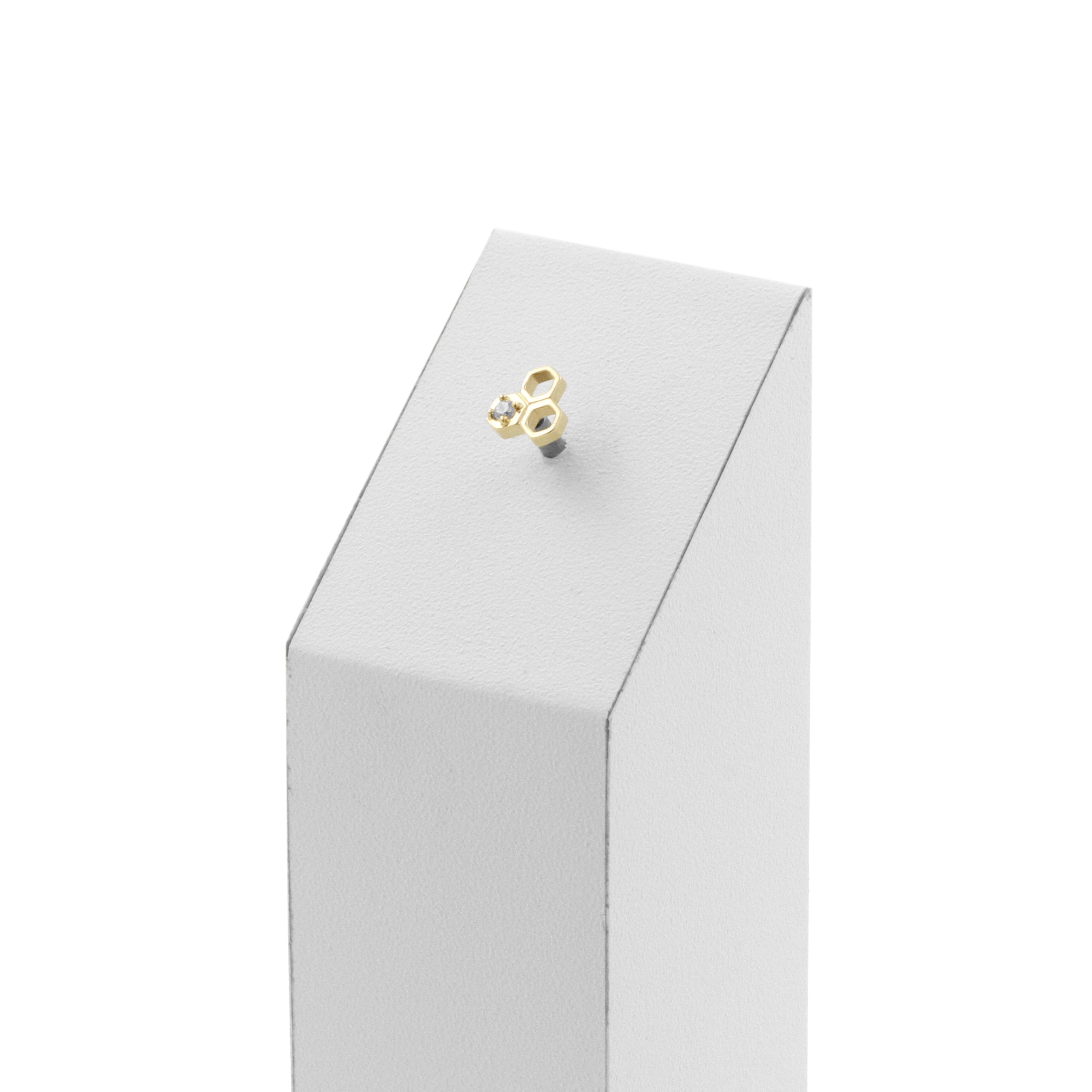 14 Karat Gold Honey Comb With Zirconia instantly adds a stylish touch to your piercing. This Threadless Top is made of 14 Karat Gold. The threadless system allows you to easily combine this top with all our bars, which we call Threadless Base, for a perfect fit and ultimate comfort.