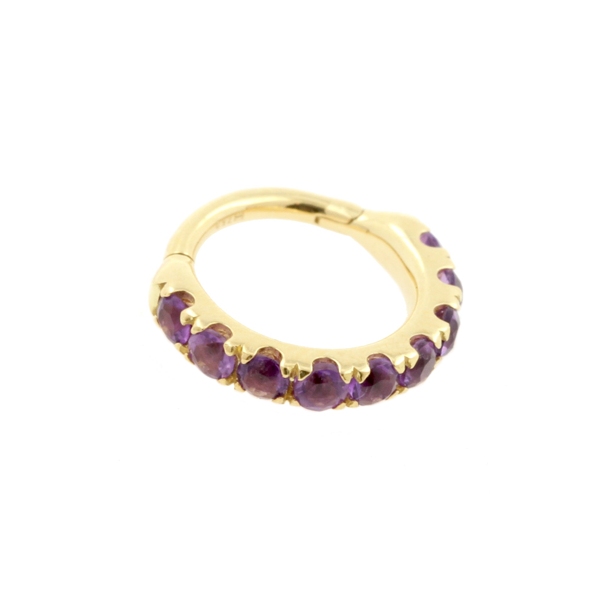 - Made of genuine, 18K gold and set with premium dark amethyst