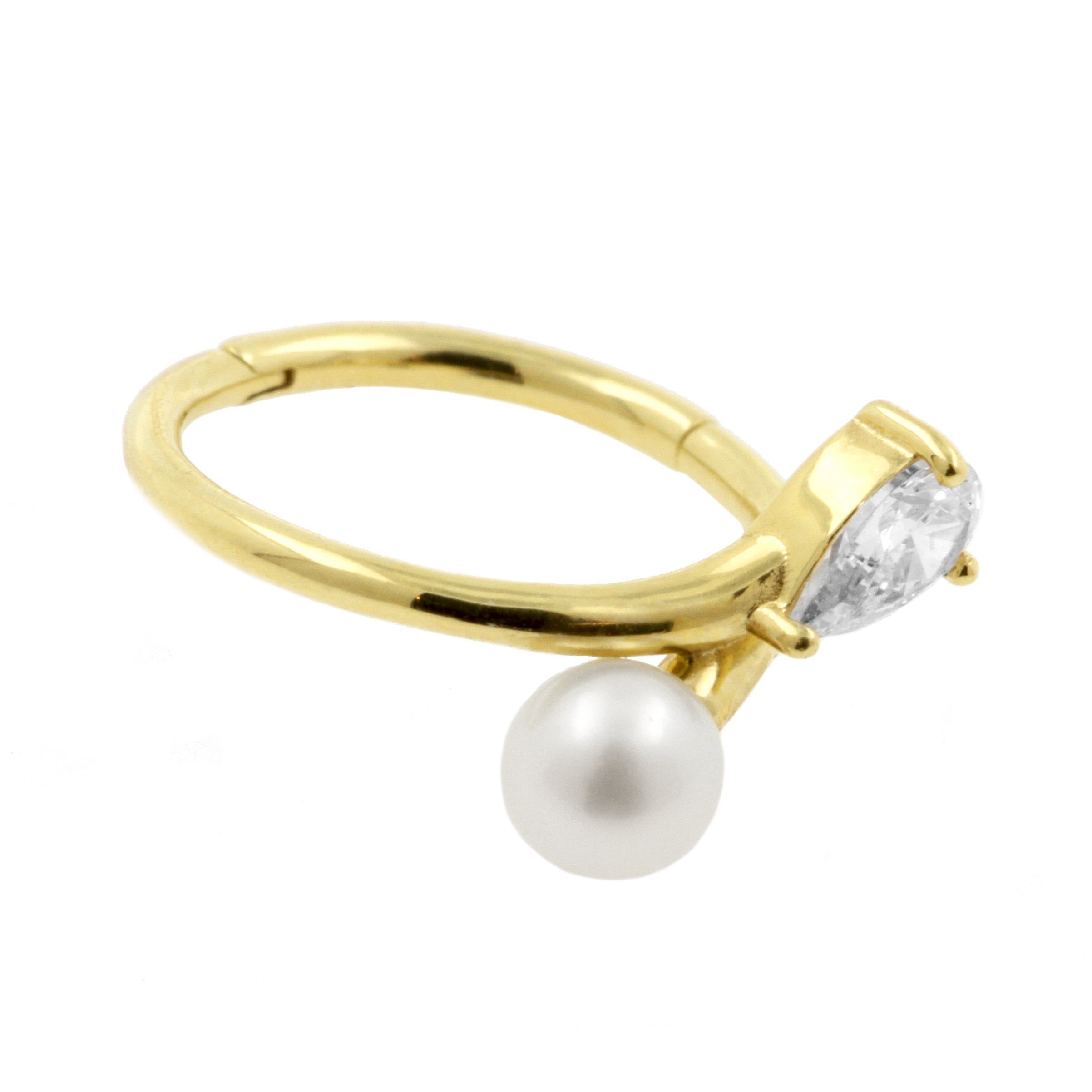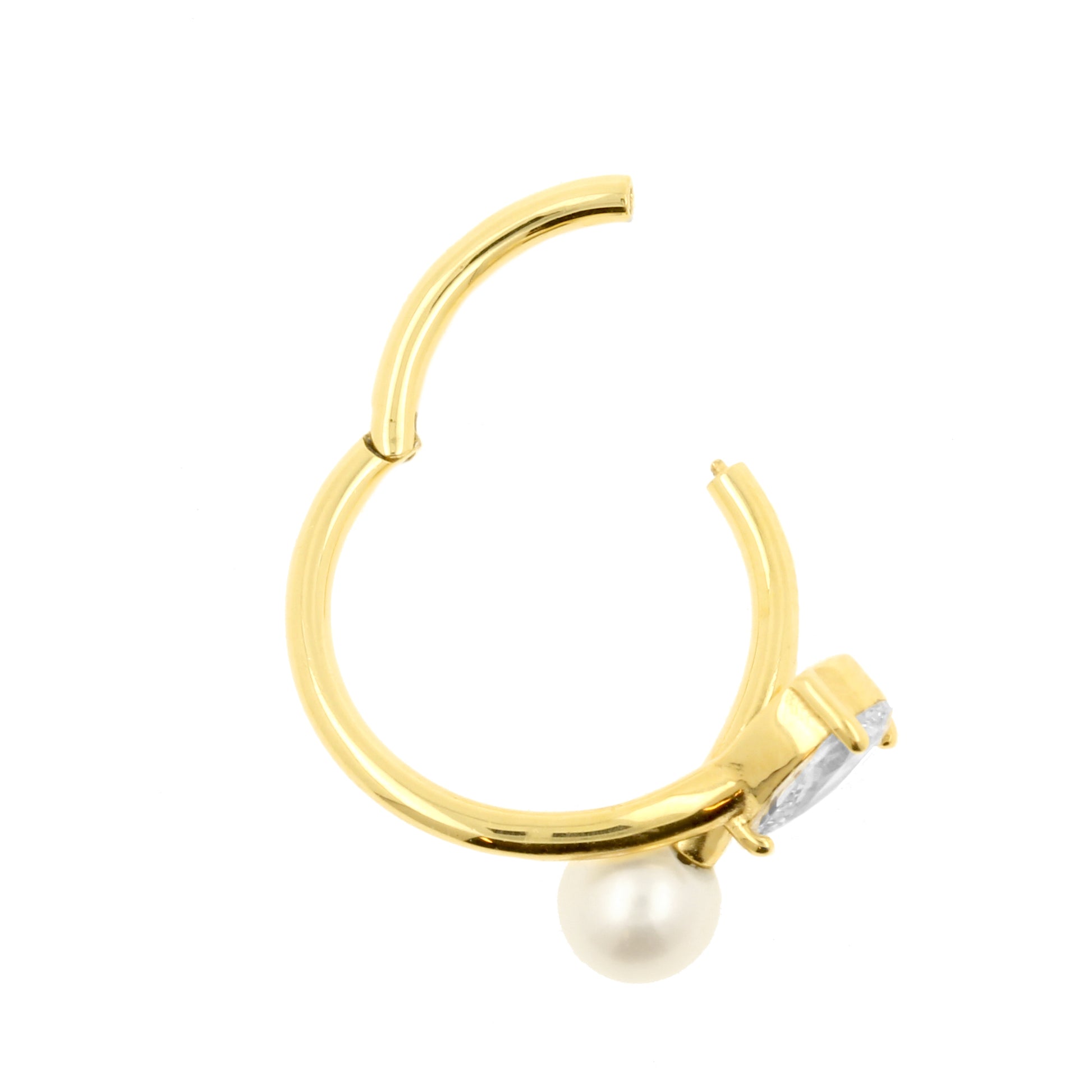 18 Karat Gold Conch Clicker - Zirconia And Pearl