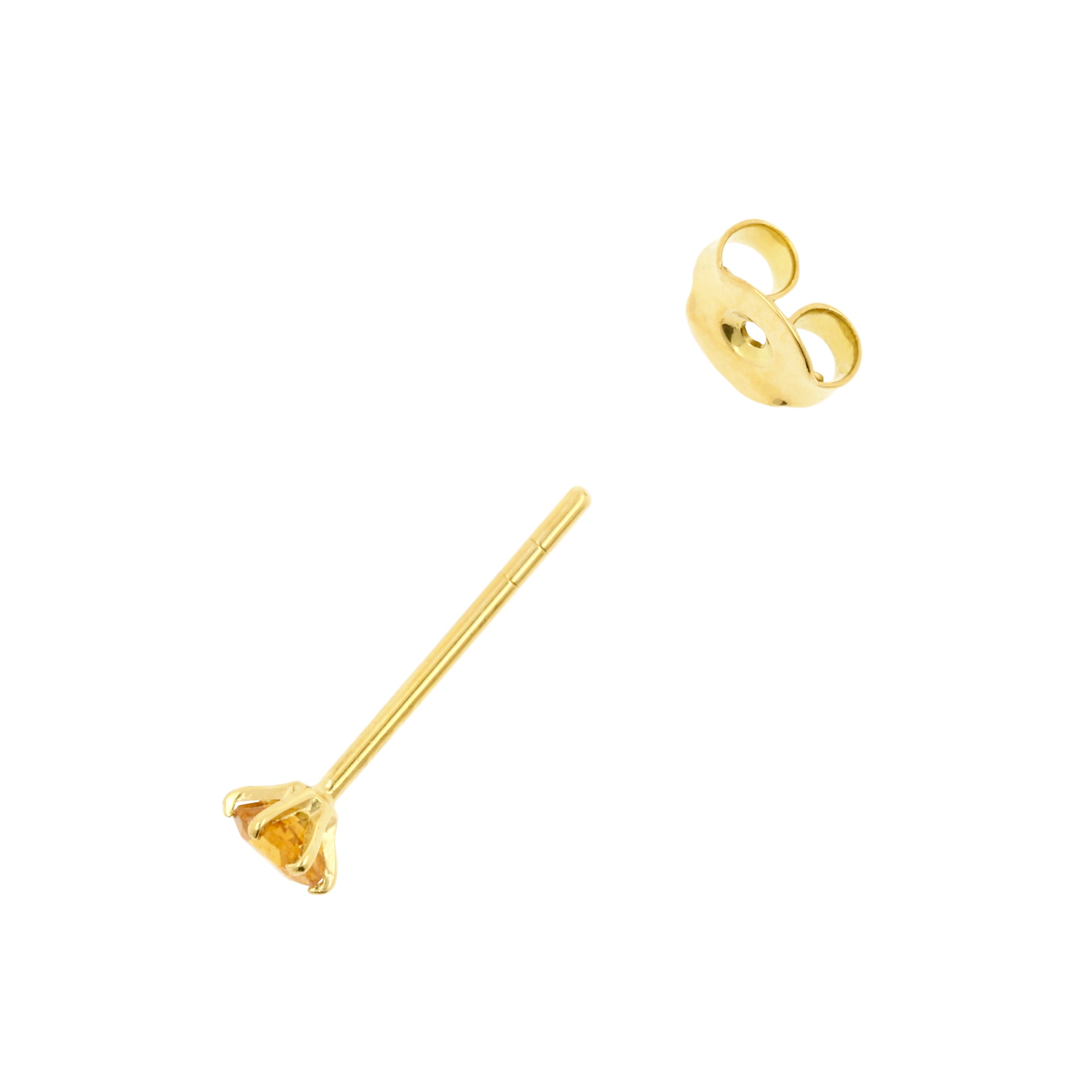 Refined 18 karat gold ear studs featuring a 3 mm citrine. Timeless luxury for everyday wear. Designed to shine subtly. The 3 mm gemstone is carefully placed in a round setting, and the entire piece is crafted from solid 18 karat gold. Finished with a classic butterfly backing for secure, comfortable wear.