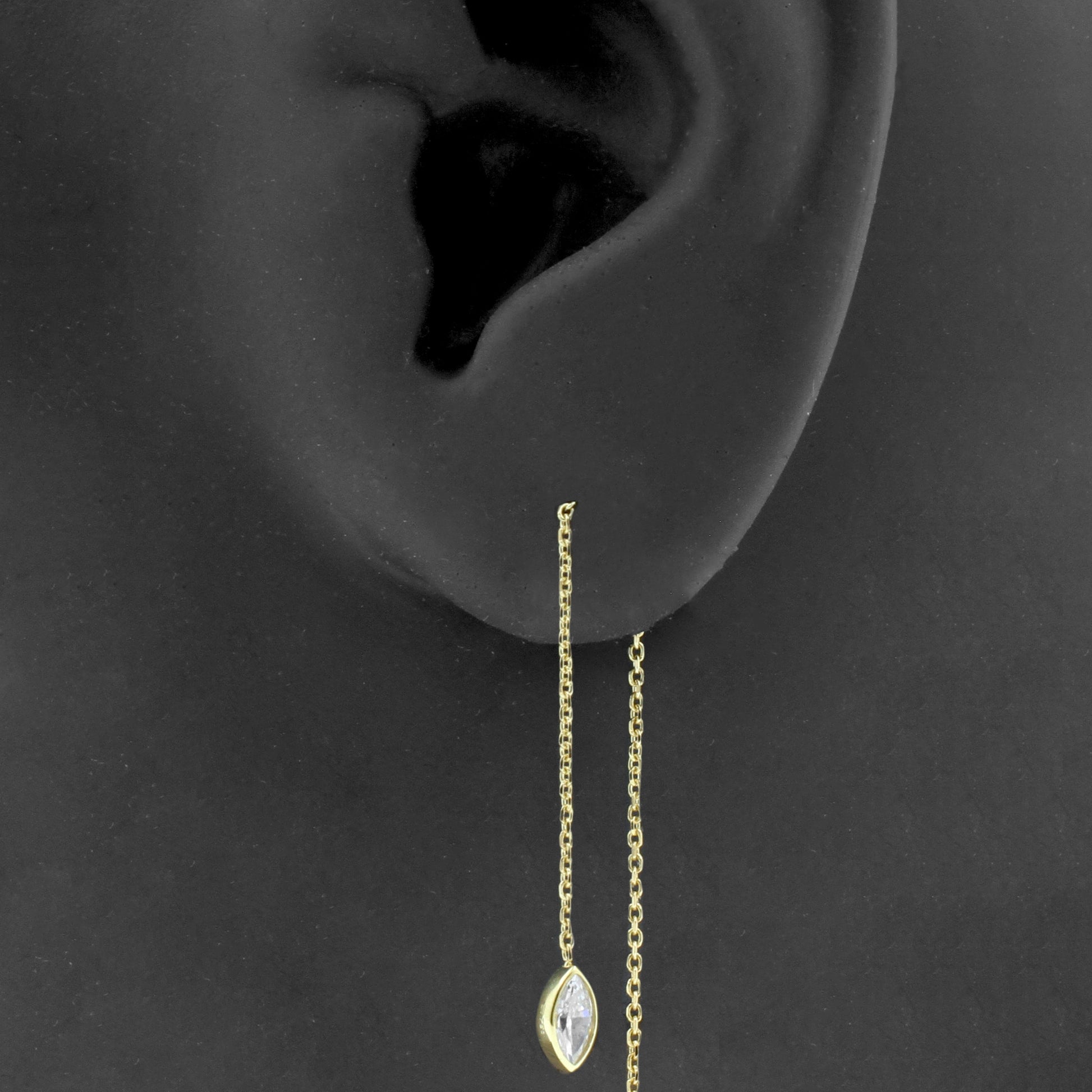 18 Karat Gold Ear Threader - Zirconia Marquise
