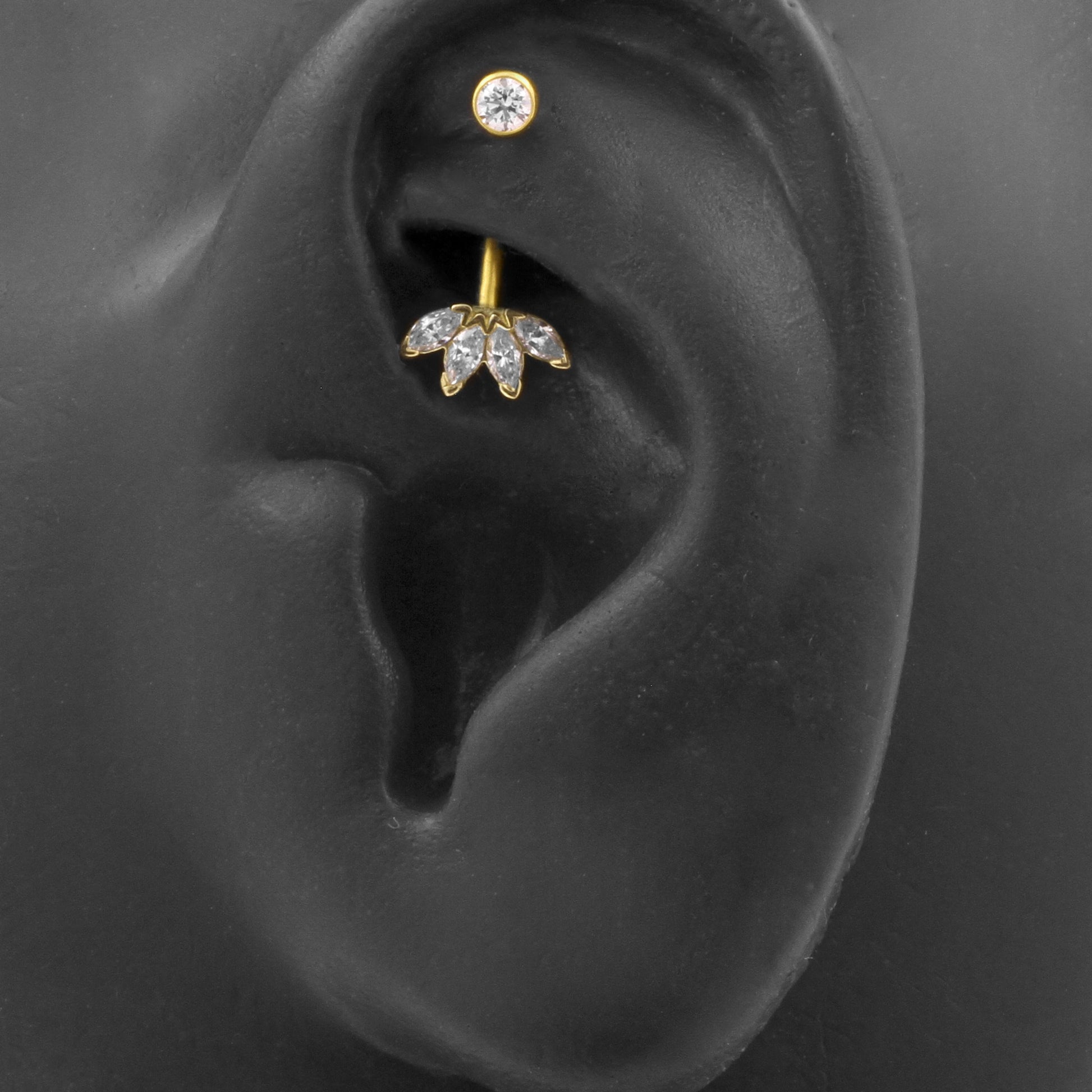 Our threadless accessories are slightly pre-bent. Please check if this meets your expectations upon first use. If not, insert the pin about halfway into the stem. Using your hands only, slightly bend the pin down. Push the pin completely into place to secure your accessory. The slightly bended pin ensures that the piercing jewelry will stay into place. Pull at both ends to remove the jewelry. Check the illustrated instructions added to the product photos.