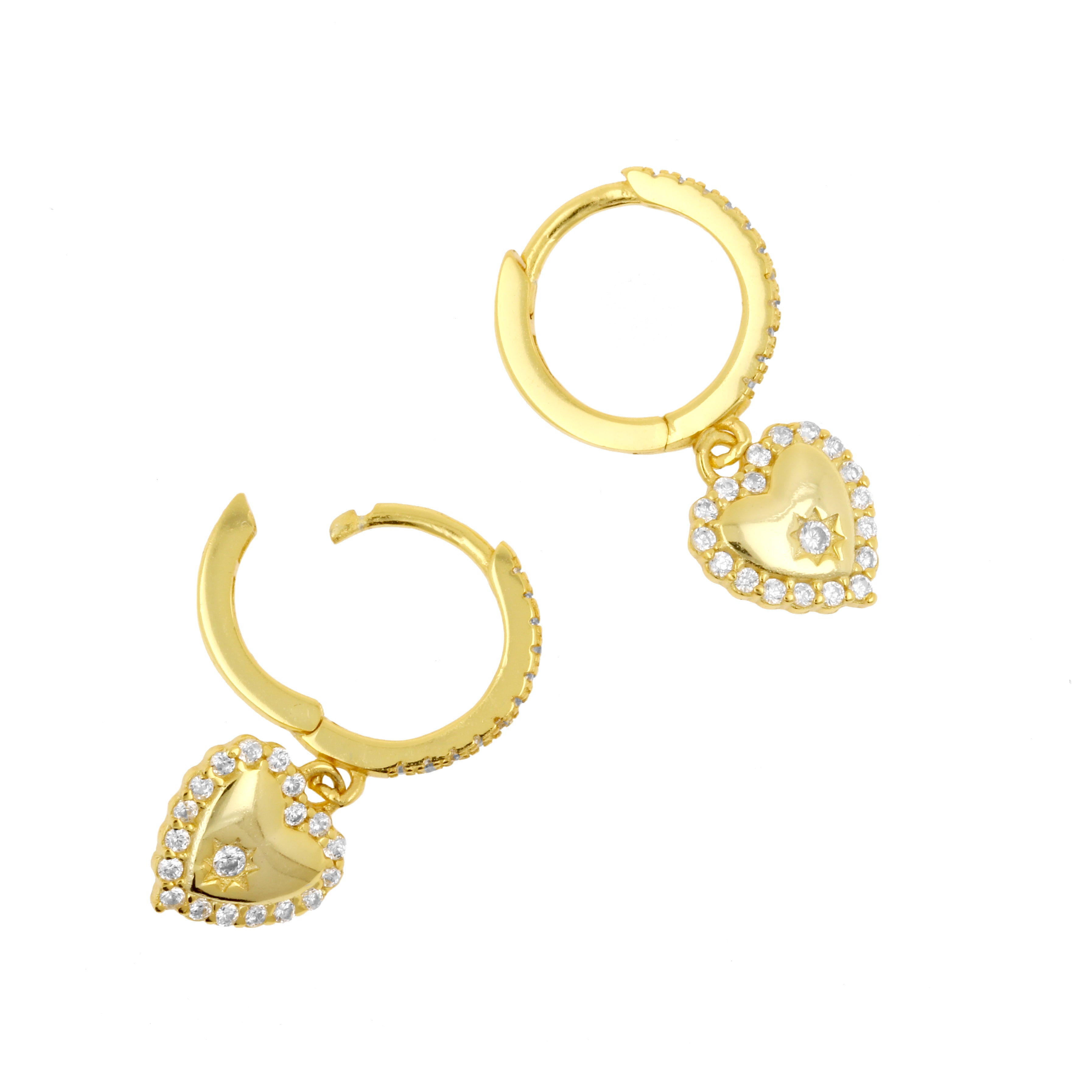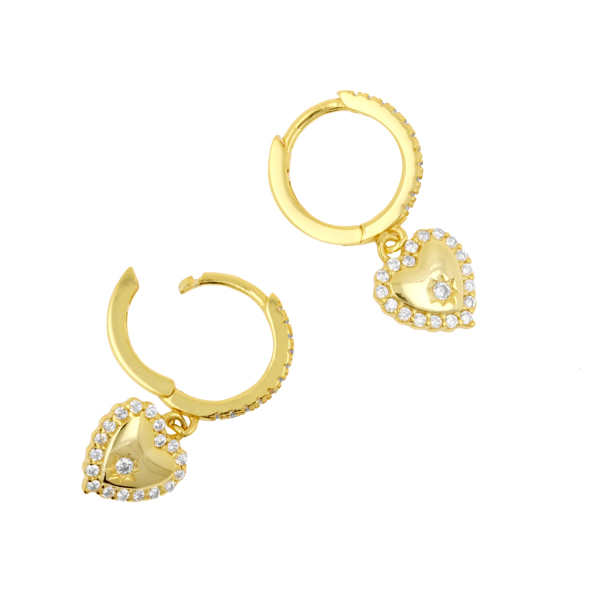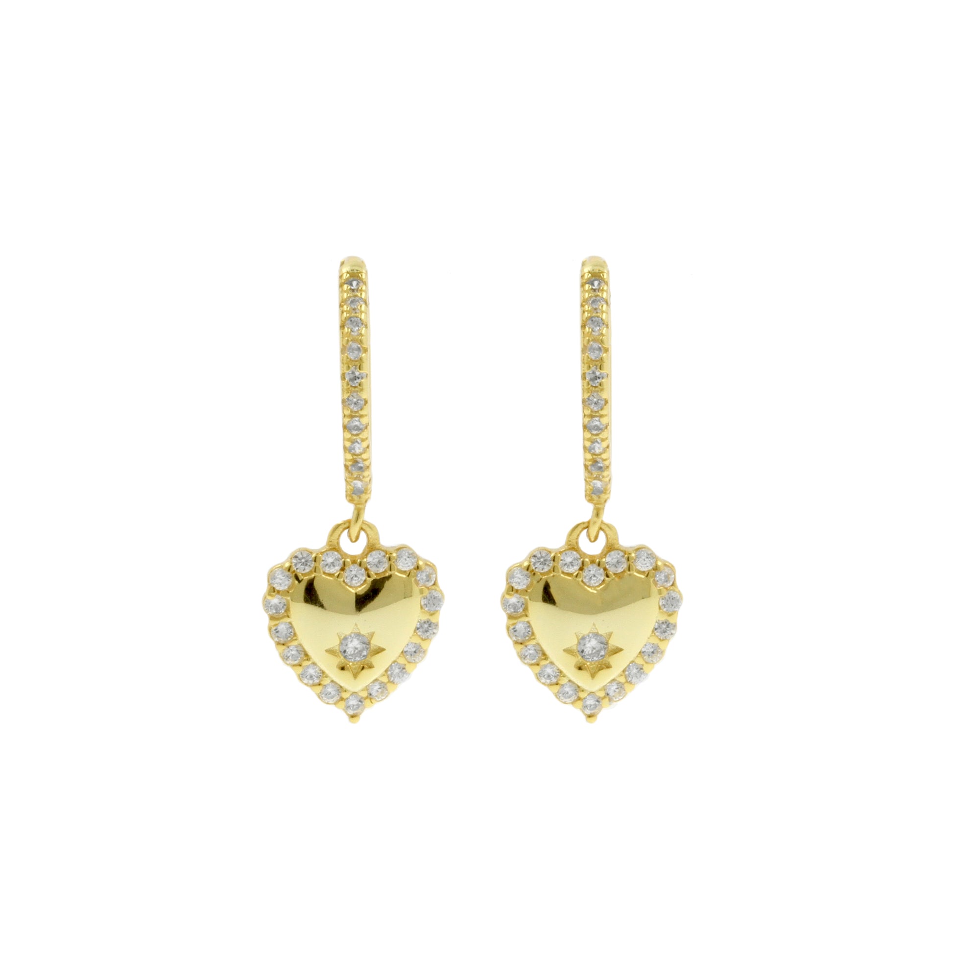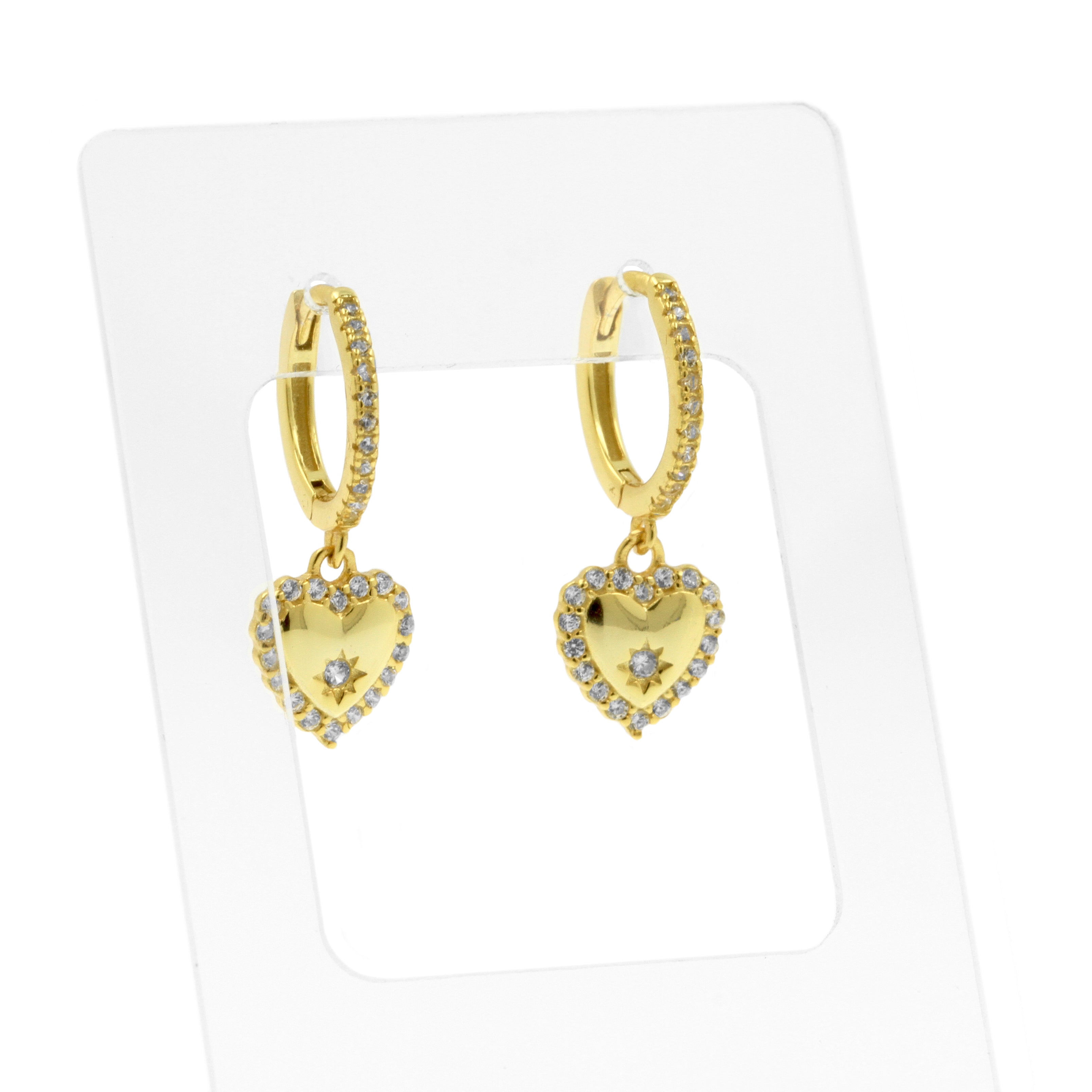925 Silver Ear Hoops - Zirkonia Heart Gold