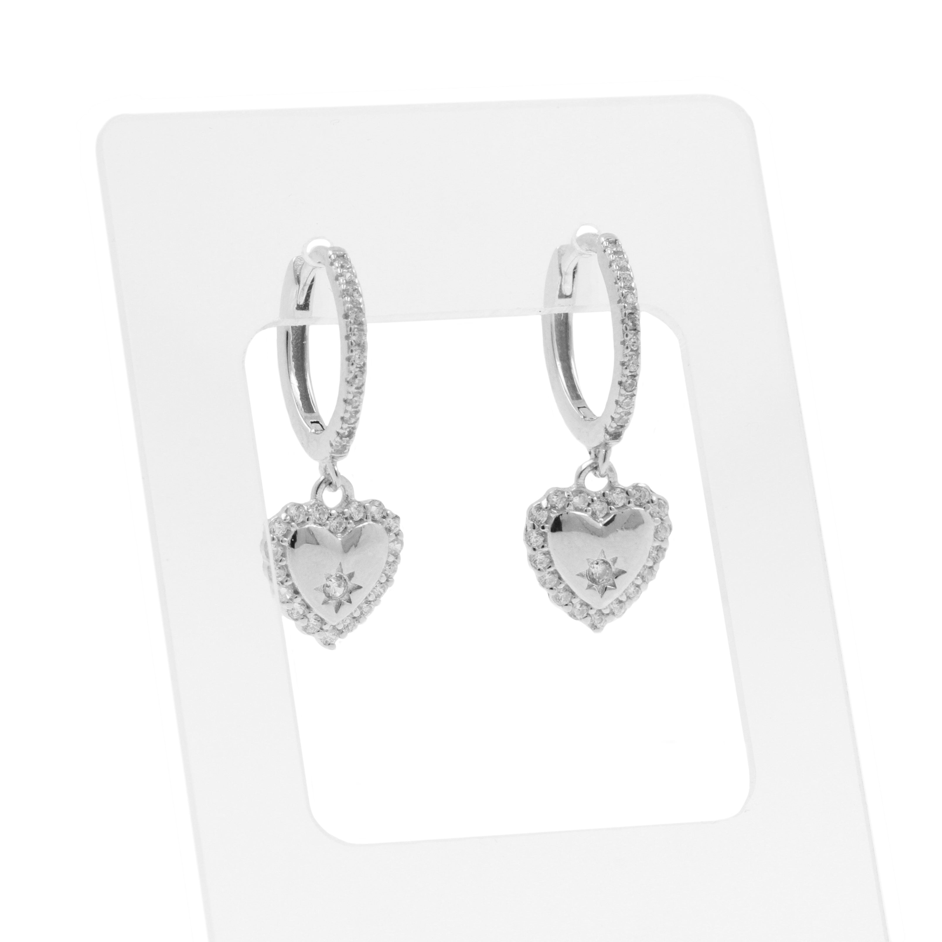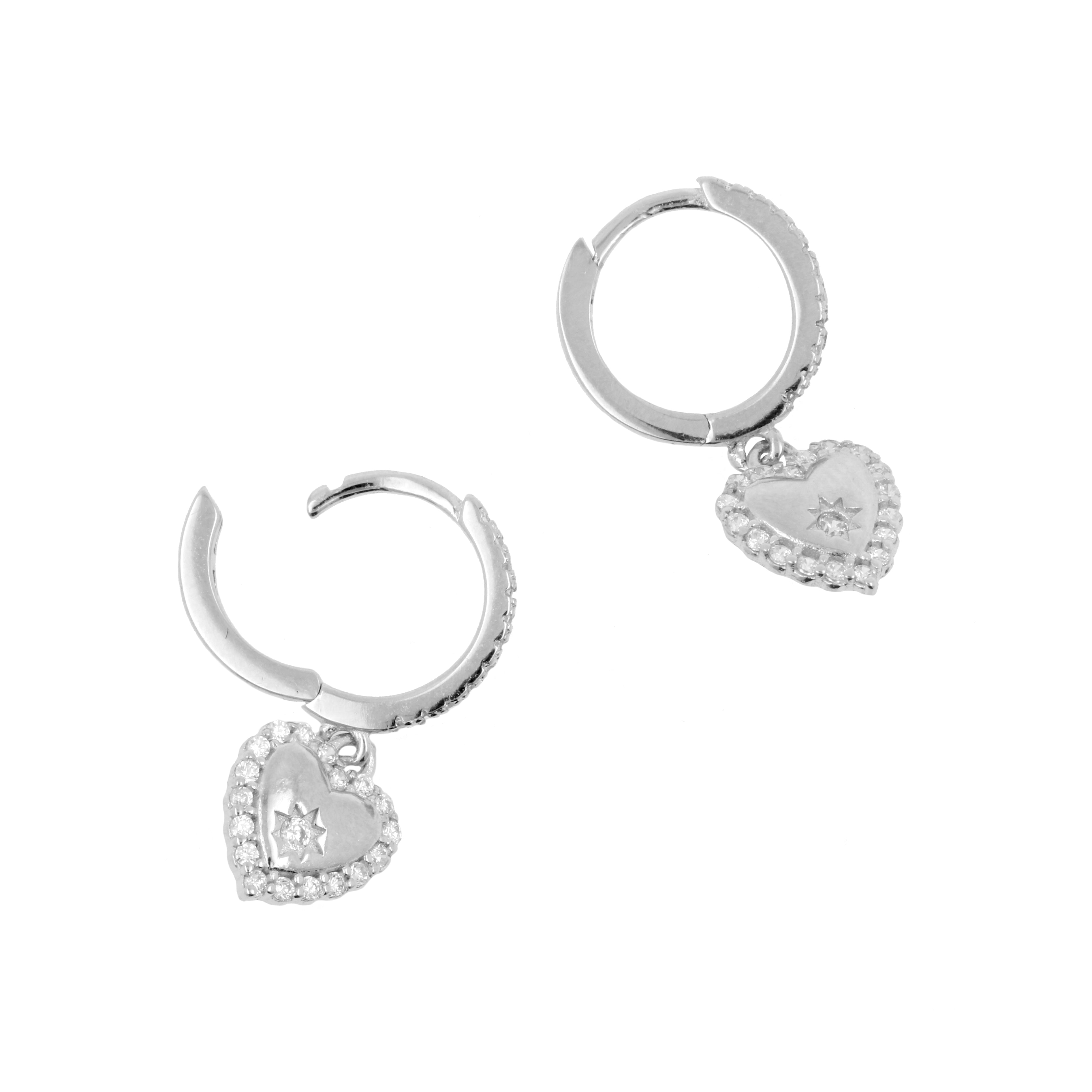 925 Silver Ear Hoops - Zirkonia Heart Silver