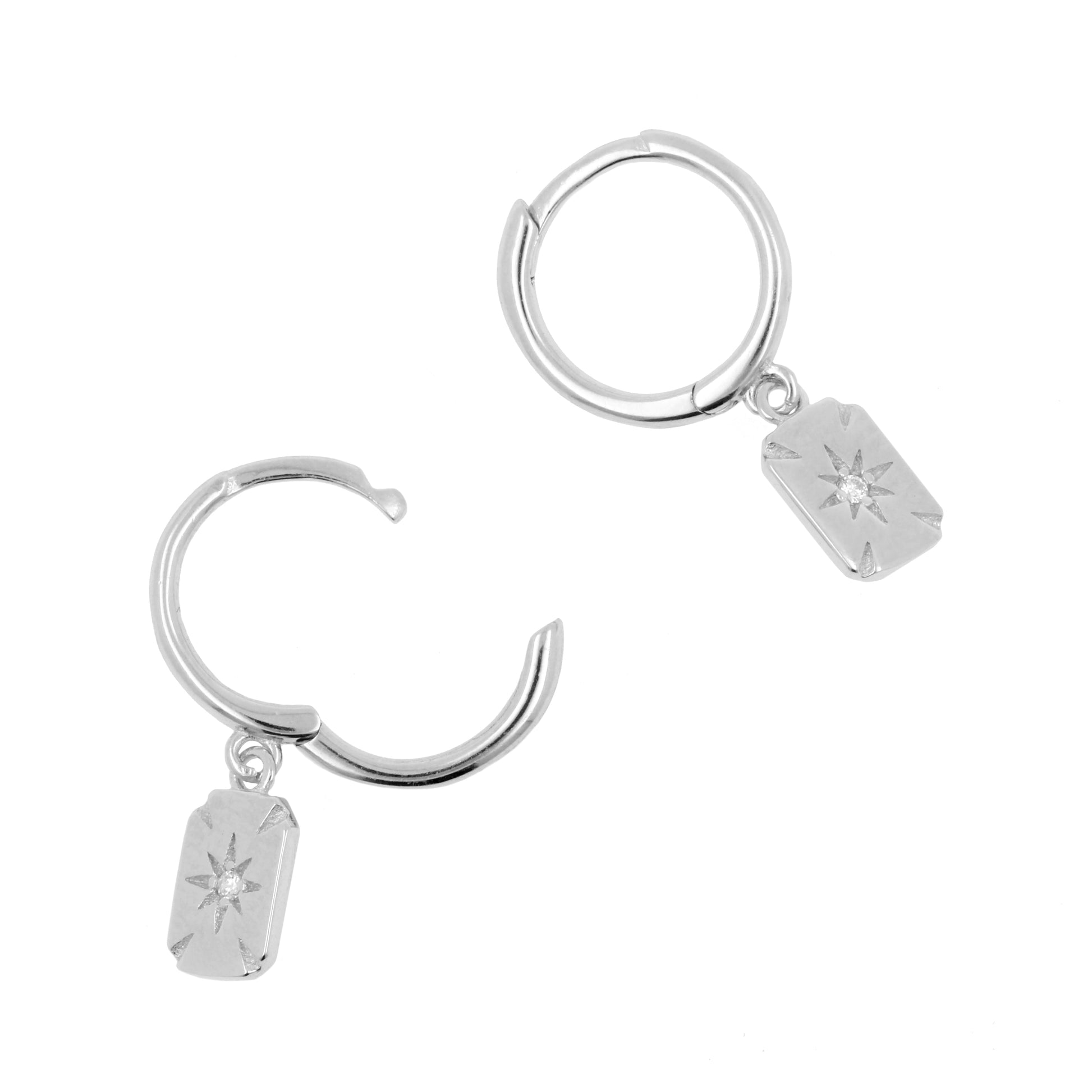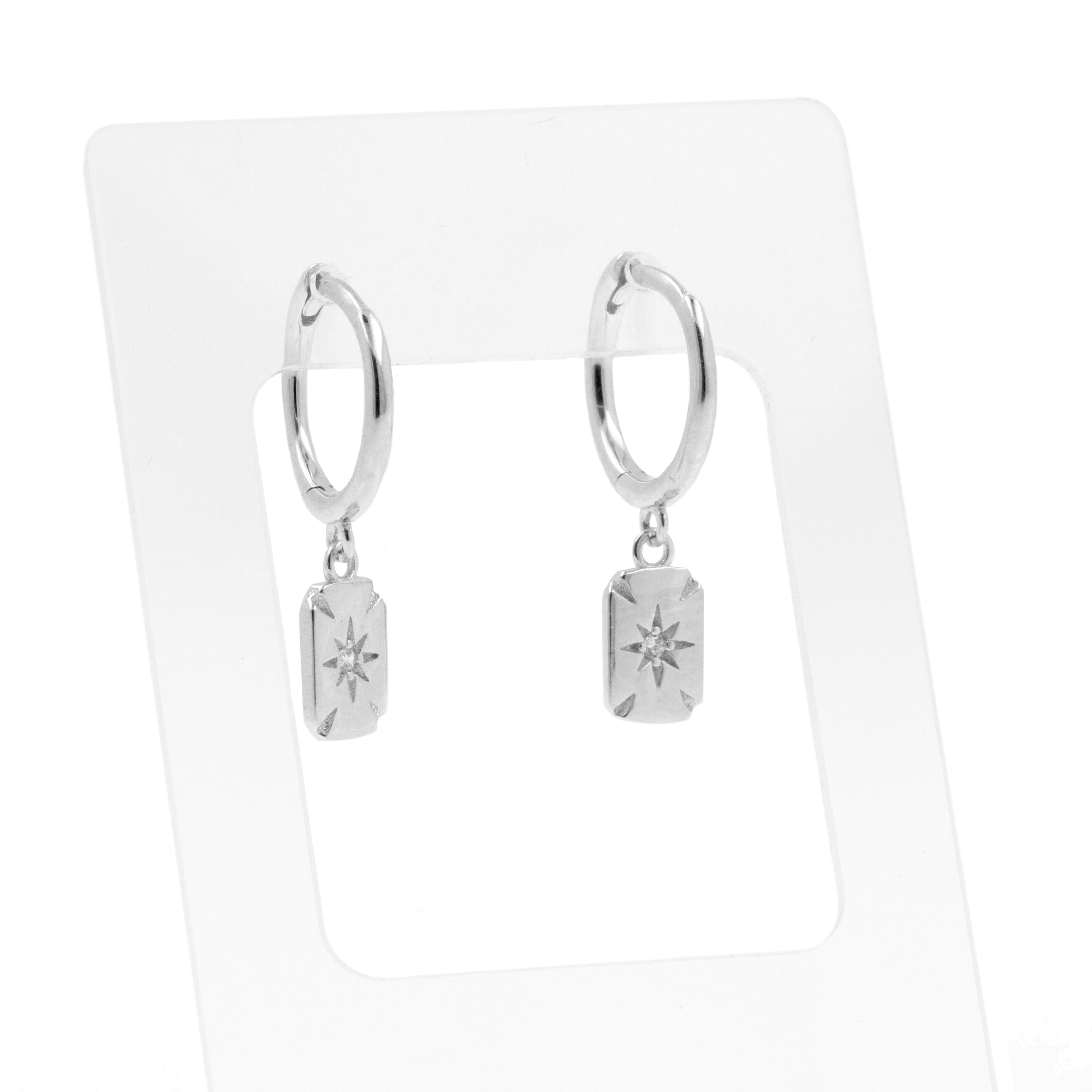 925 Silver Ear Hoops - Zirkonia Square Silver