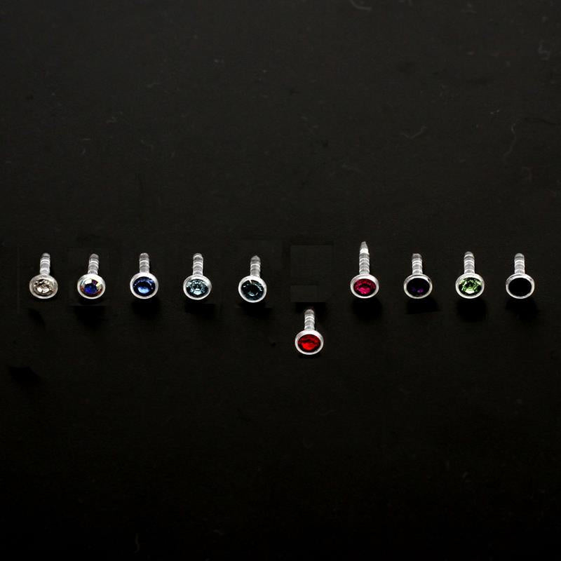 Spice up your labret! These Bioplast inserts are set with a small facetted crystal and suitable for our 1,2 mm and 1,6 mm push fit labrets.