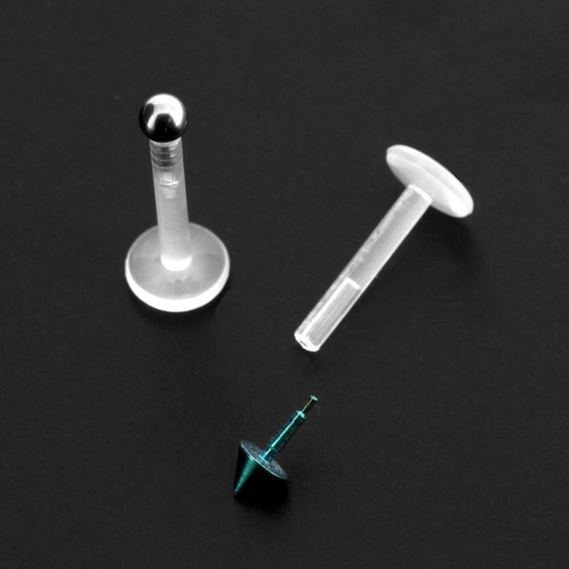 Want to add more comfort to your piercings? Look no further! These 1,6 mm push-fit Bioplast labret studs are made with oral piercings in mind. The flexible nature of Bioplast will ensure very comfortable wear for any type of lip piercing. Adding an accessorie of your choice to these labret studs is incredibly simple, just push the end of the accessory in place and you're done! We offer a vast range of push fit accessories for these labret studs. Please keep in mind that you will receive the seperate post only, without accessories. Regular, threaded accessories will not fit these studs, please use push-fit accessories only.