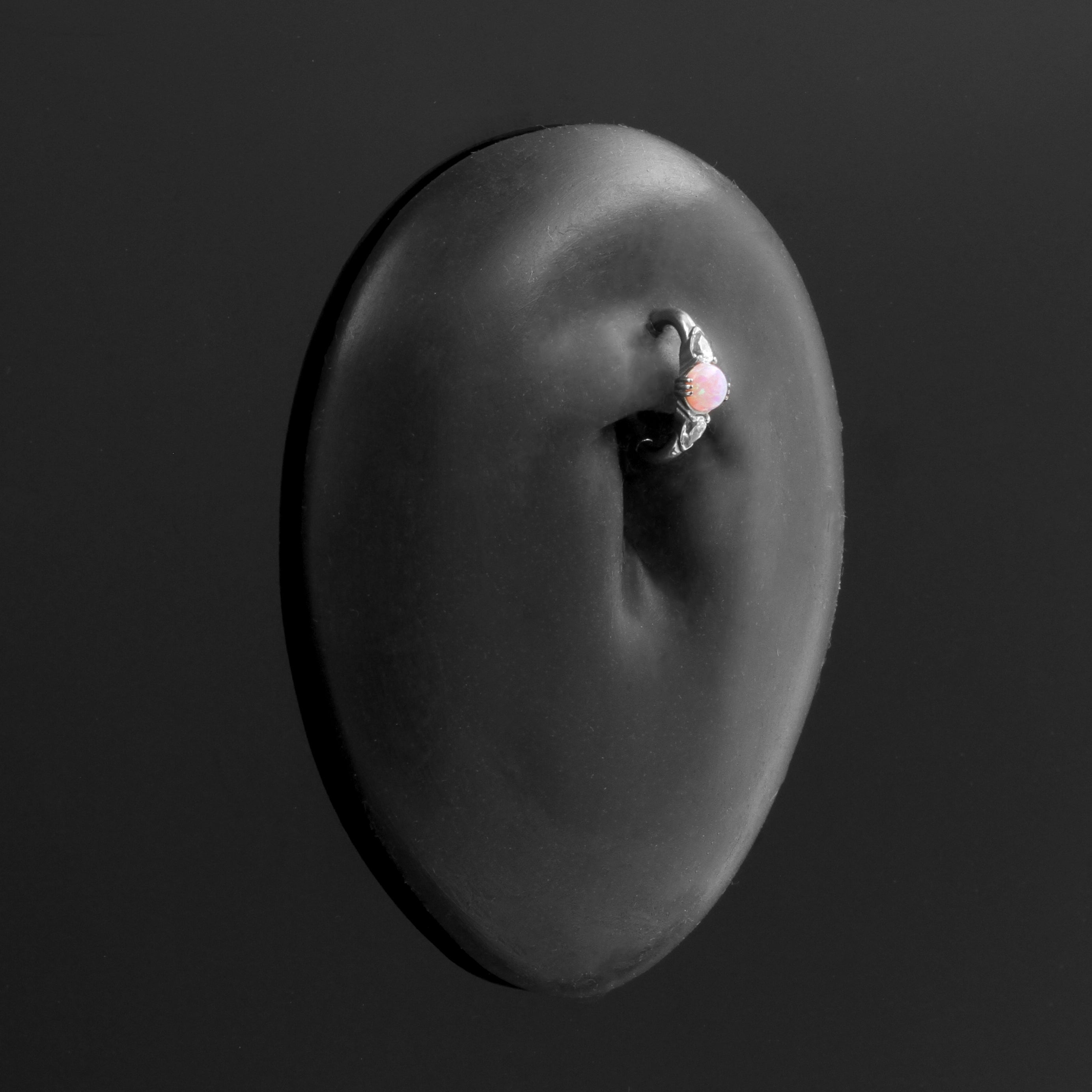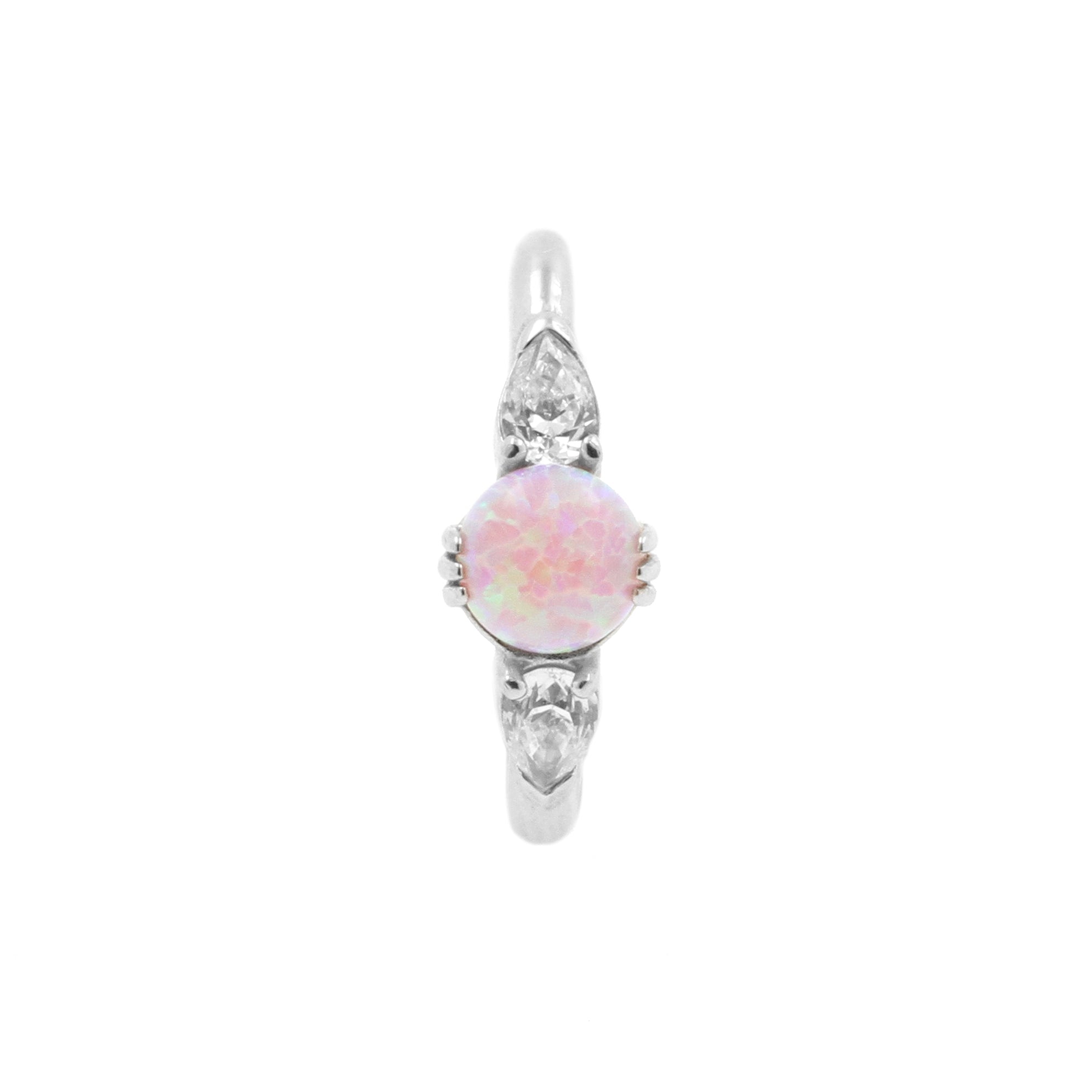 Nickel-Free Stainless Steel Belly Ring Clicker - Opal And Zirconia Pink Opal