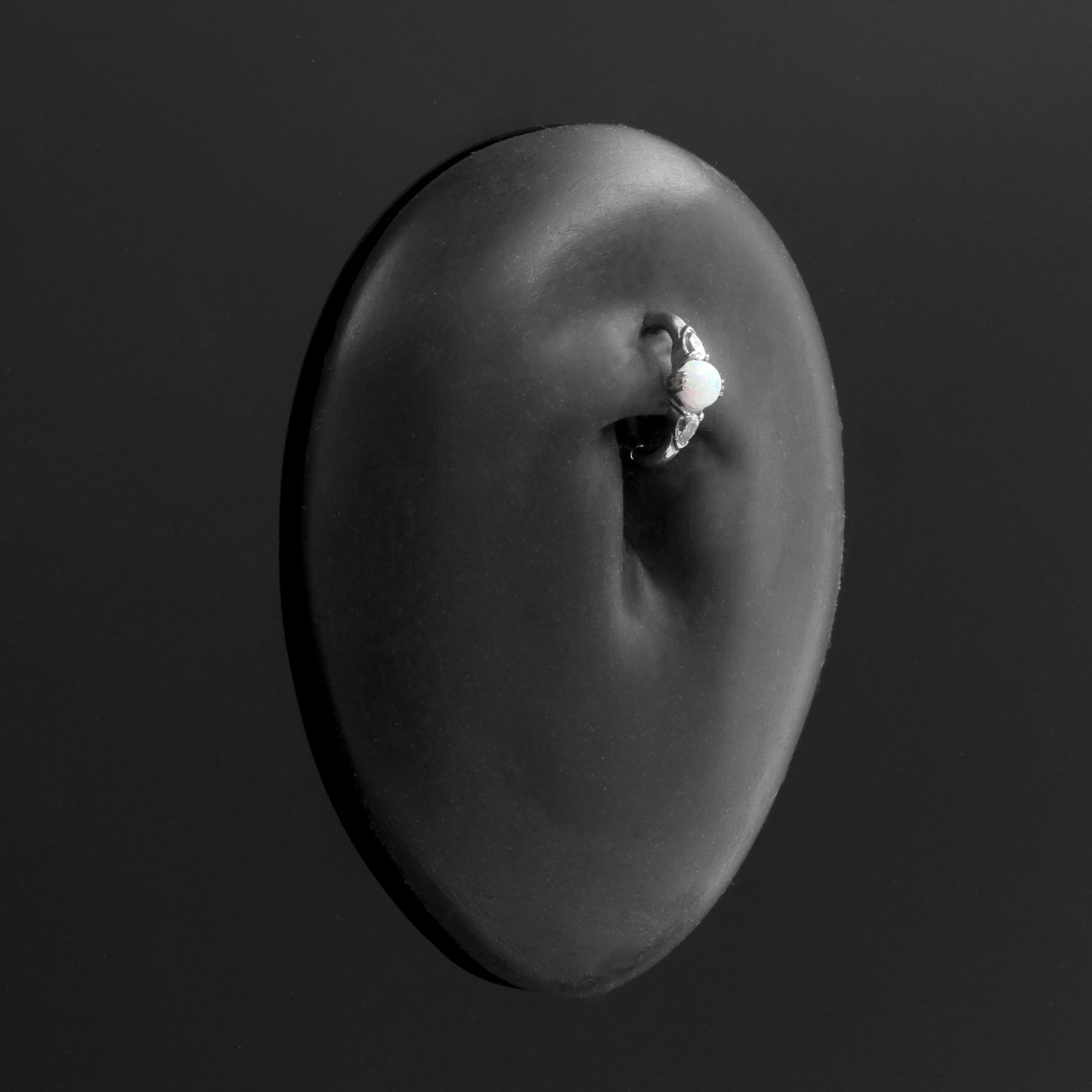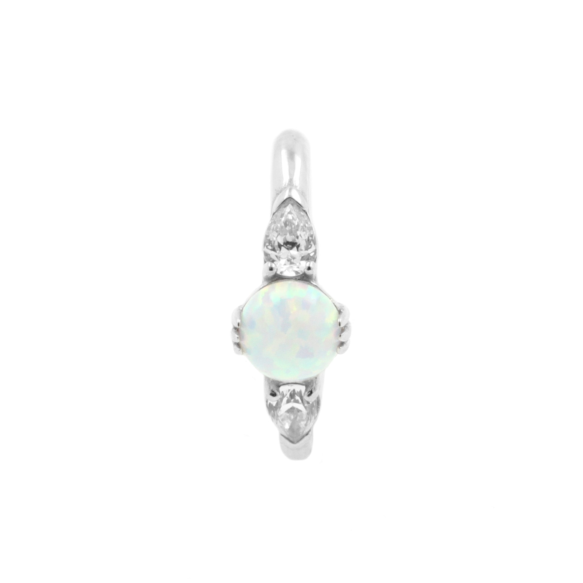 Nickel-Free Stainless Steel Belly Ring Clicker - Opal And Zirconia White Opal