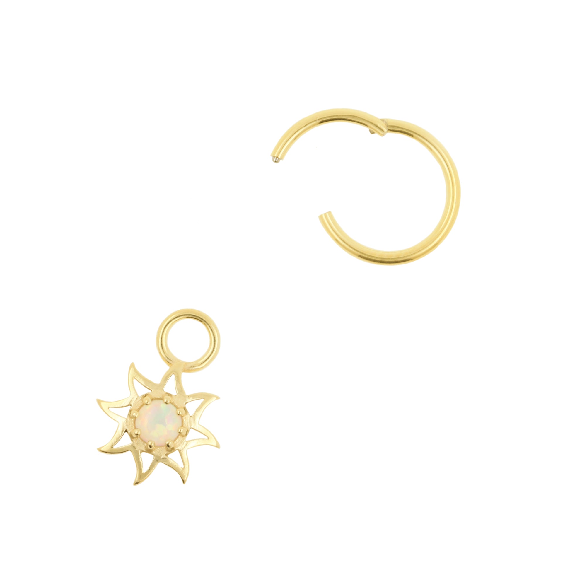 Add refinement to your jewelry with this star charm. Made from Nickel-free Stainless Steel with gold-colored PVD coating. Provided with synthetic opal.
