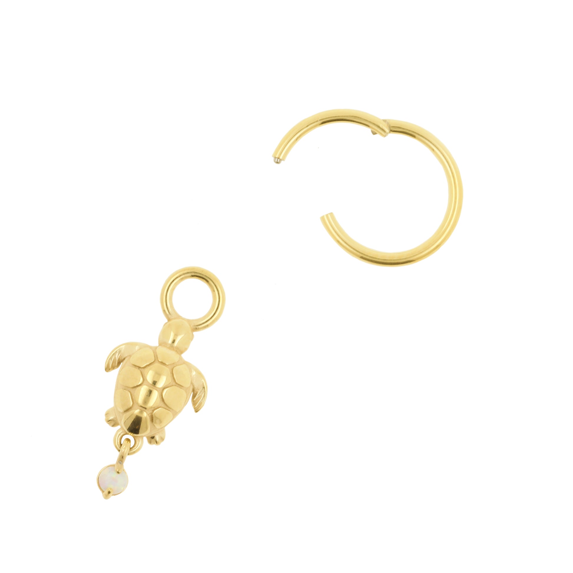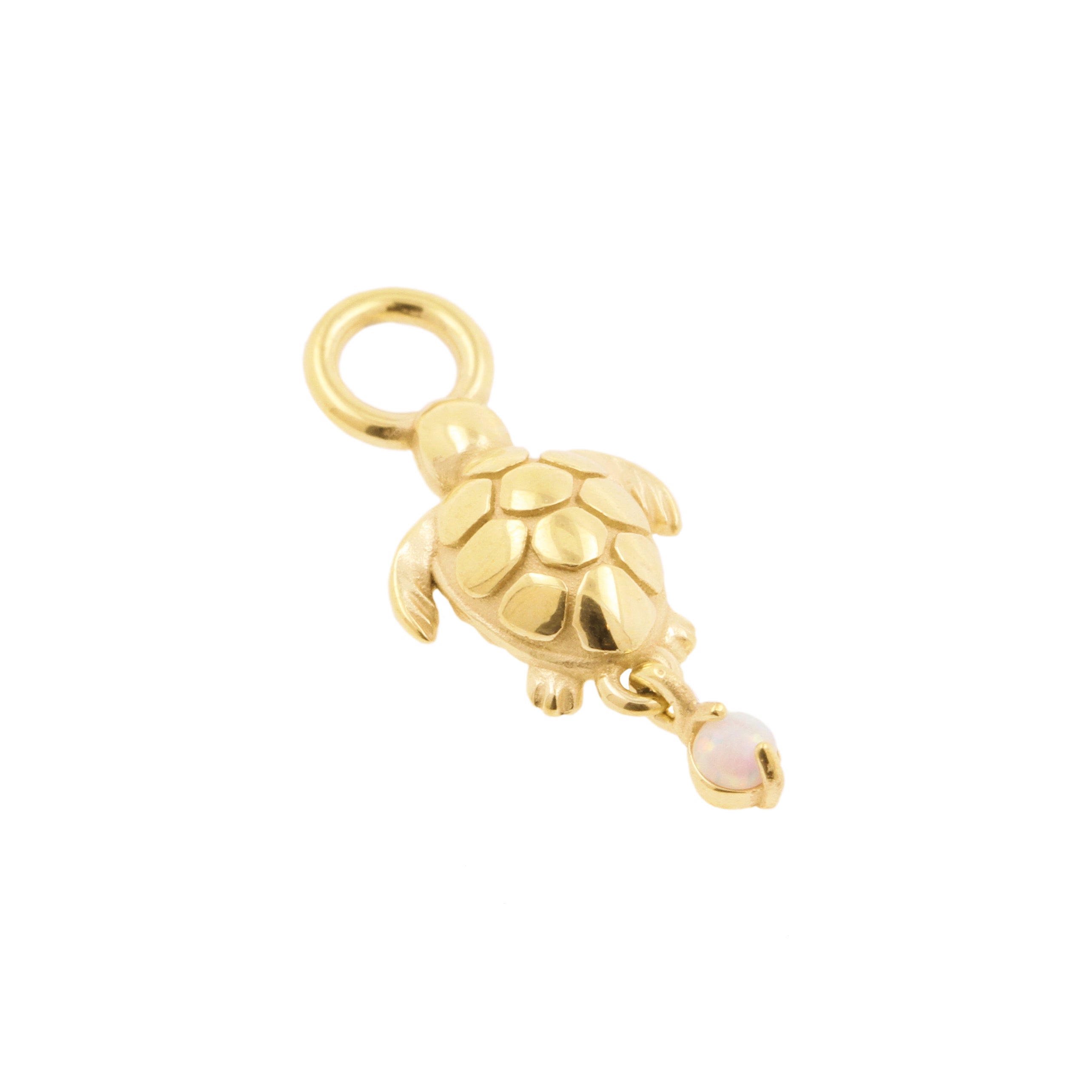 Add refinement to your jewelry with this turtle charm. Made from Nickel-free Stainless Steel with gold-colored PVD coating. Provided with synthetic opal.