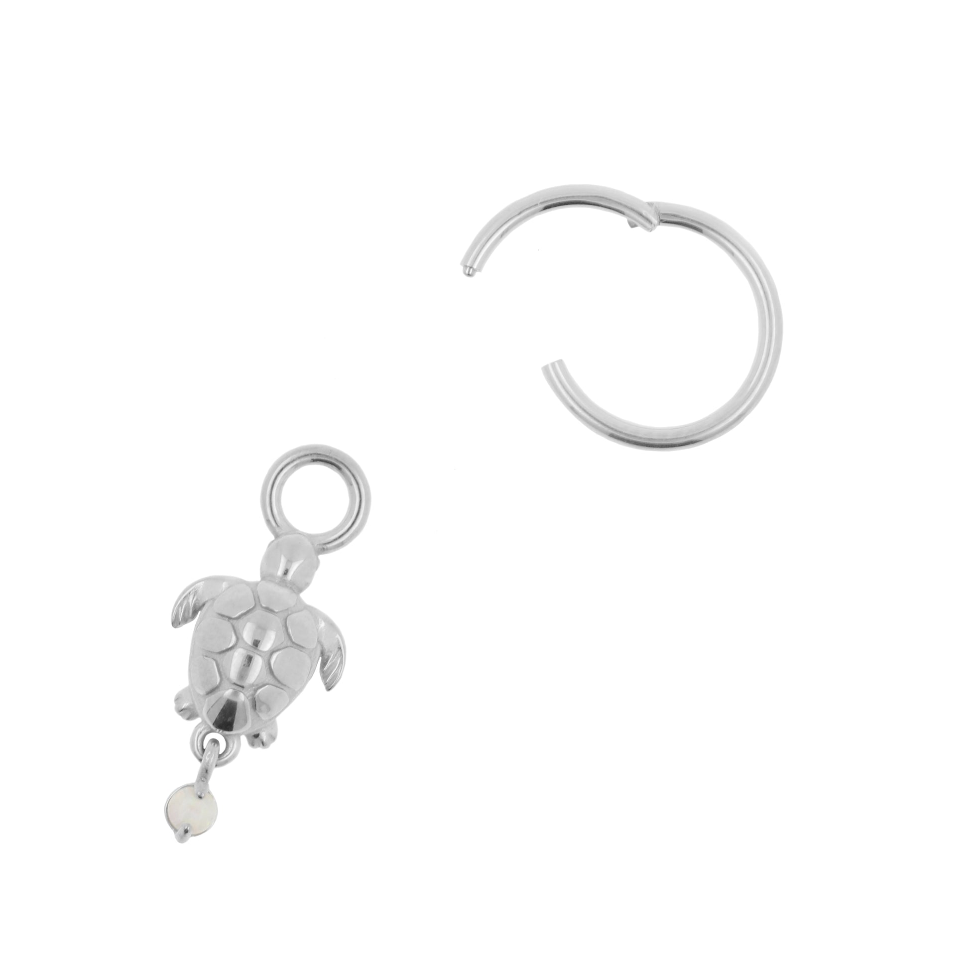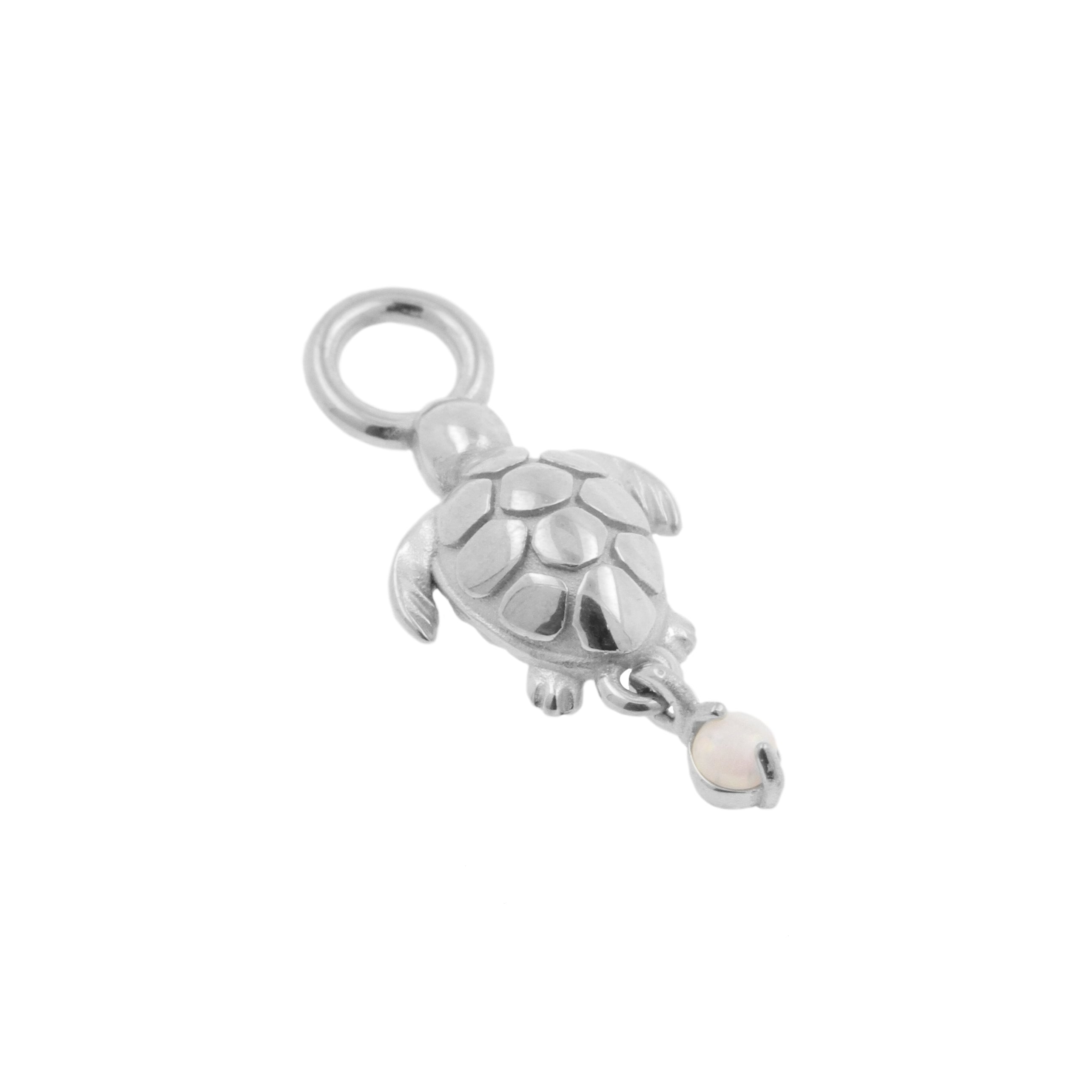 Add refinement to your jewelry with this turtle charm. Made from Nickel-free Stainless Steel with silver-colored PVD coating with a white-gold sheen (nickel-free). Provided with synthetic opal.
