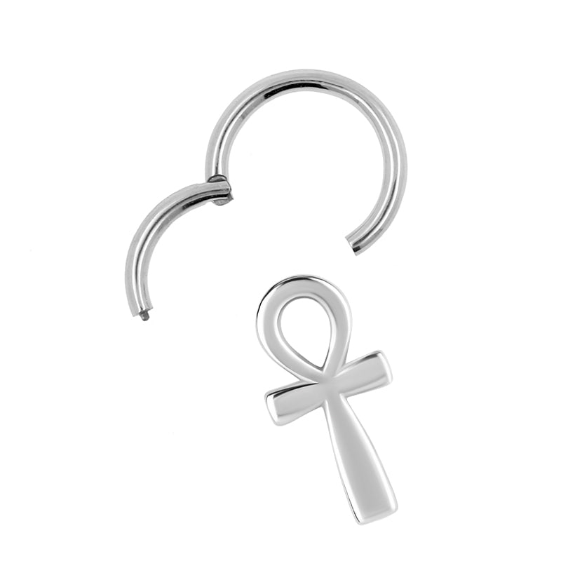 Nickel-Free Stainless Steel Click Ring Charm - Ankh Silver