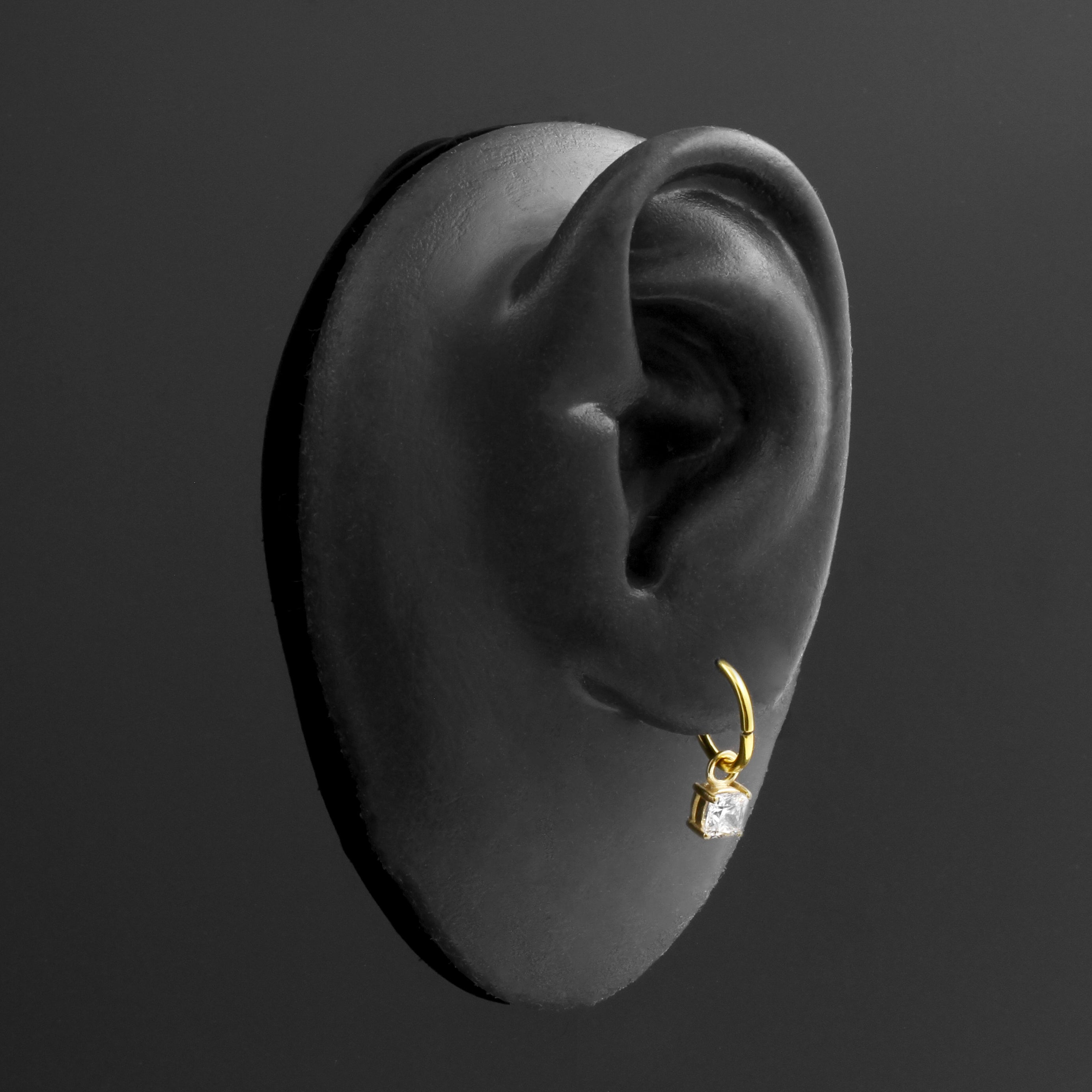 Nickel-Free Stainless Steel Click Ring Charm - Zirconia Square Gold