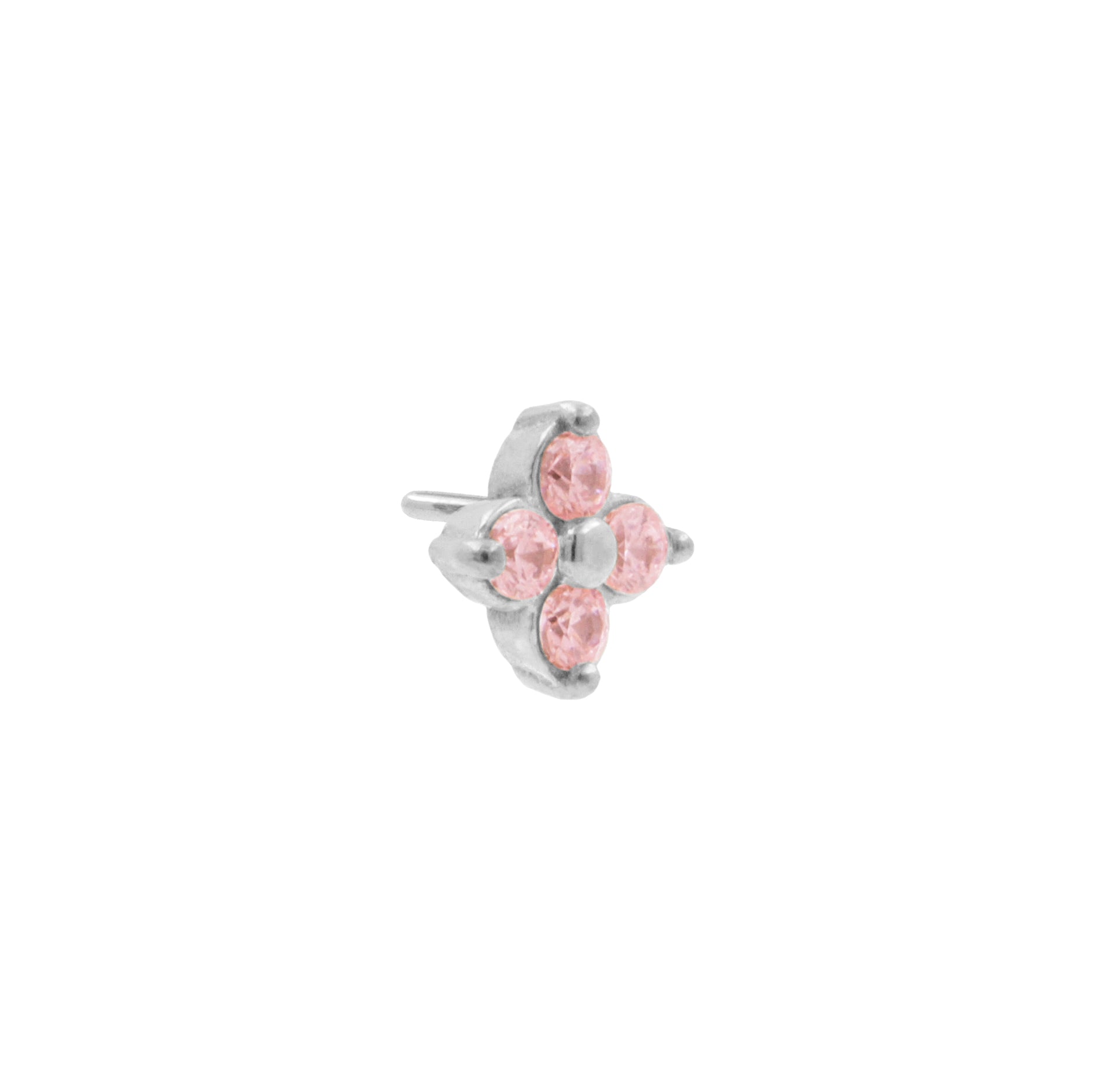 This delicate Quatrefoil with four pink cubic zirconia adds a refined, playful touch to your ear stack. The soft clover shape frames each stone beautifully. The silver tone has a white-gold style shine and pairs easily with other jewellery.