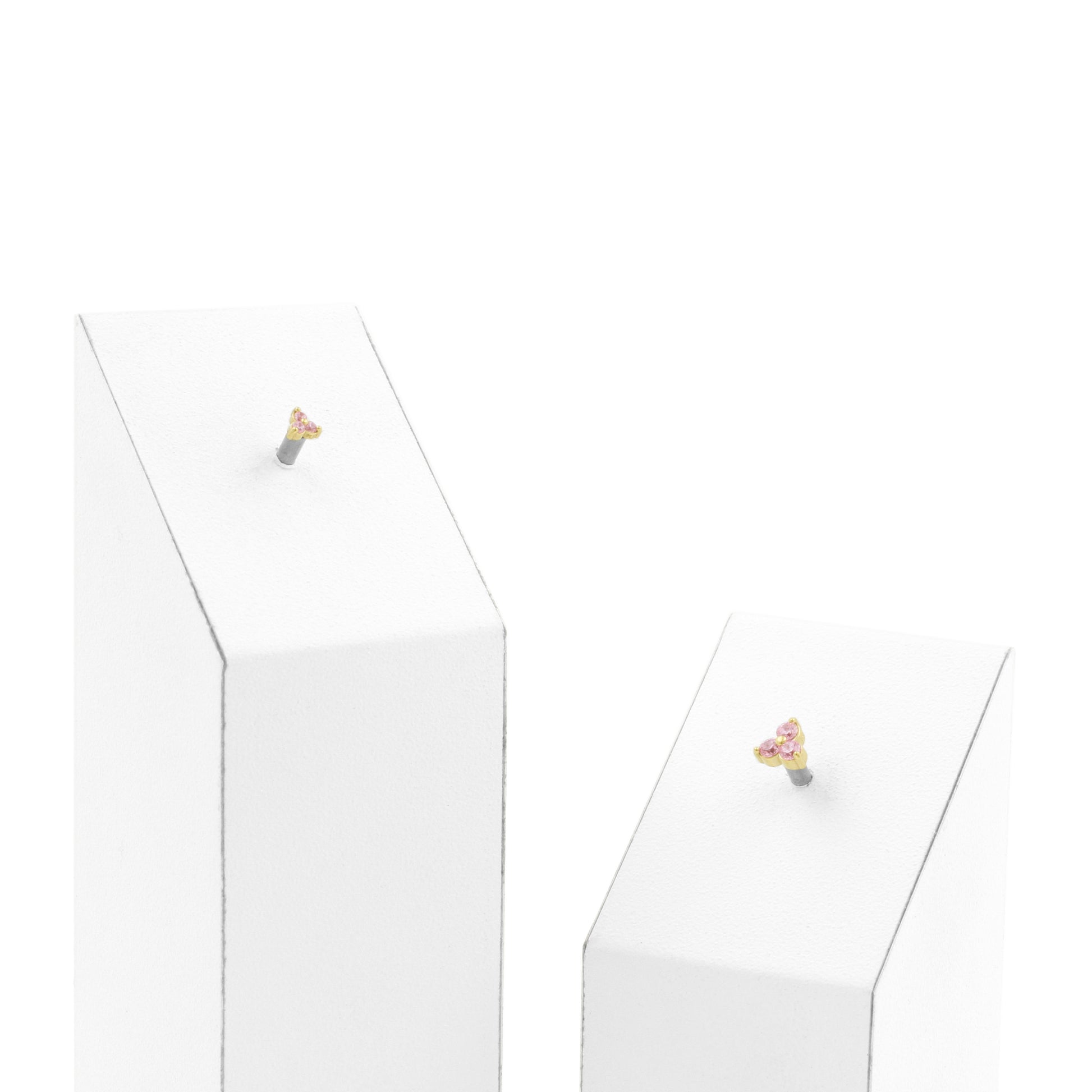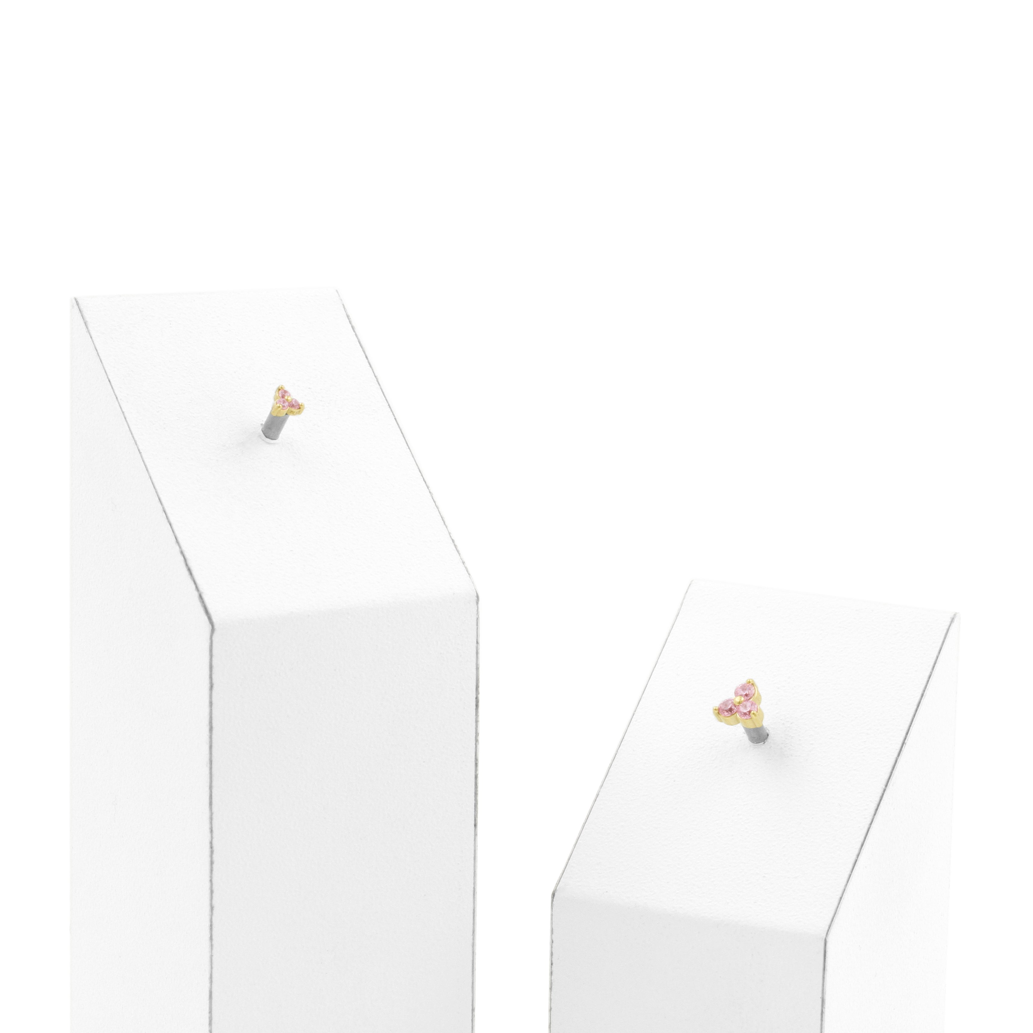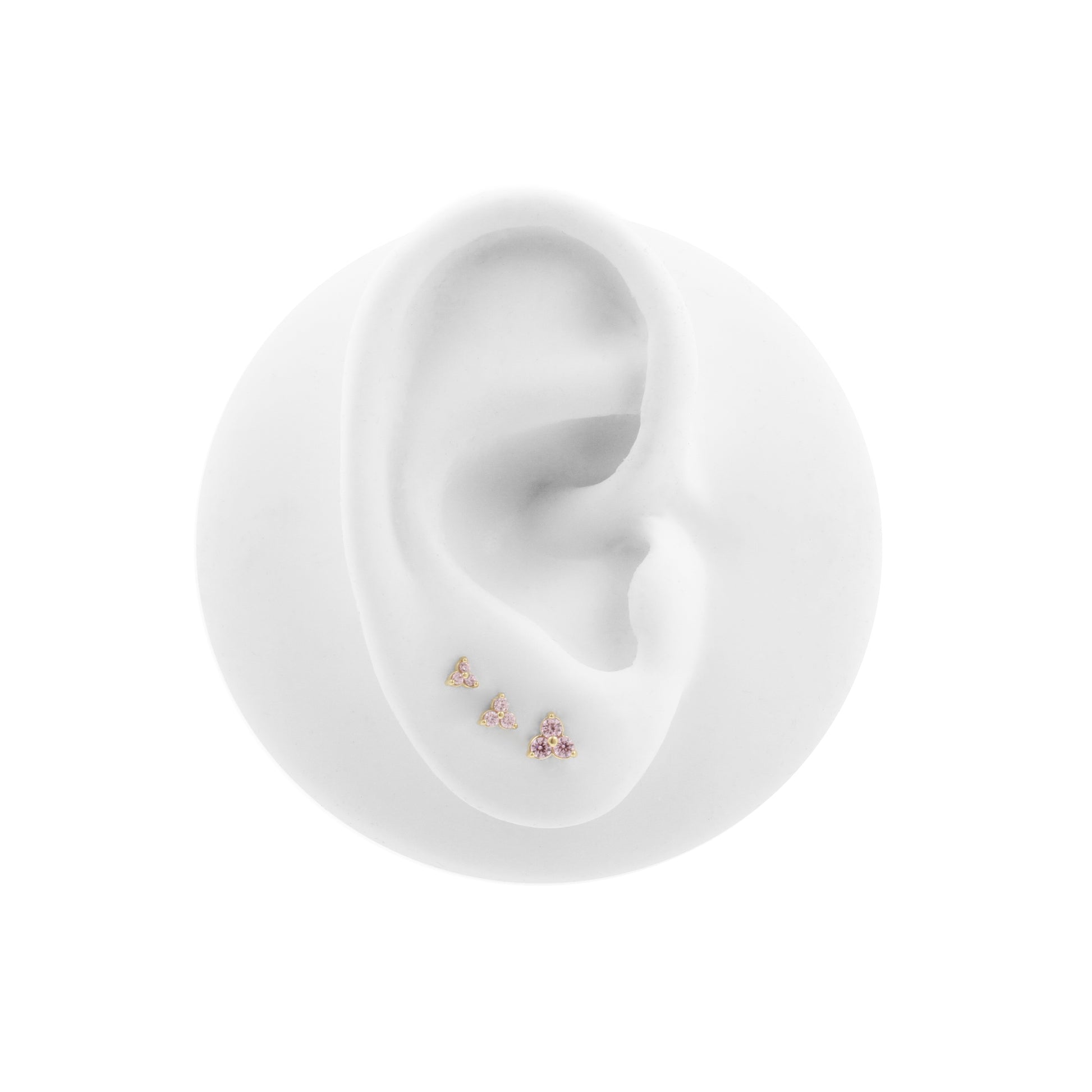 Elegant yet bold. This Trinity Threadless Top by Devilheart brings three pink zirconia stones together in a refined triangle setting. The golden finish adds a luxurious touch, while the nickel‑free steel with P.V.D. gold coating preserves color and long‑lasting shine.