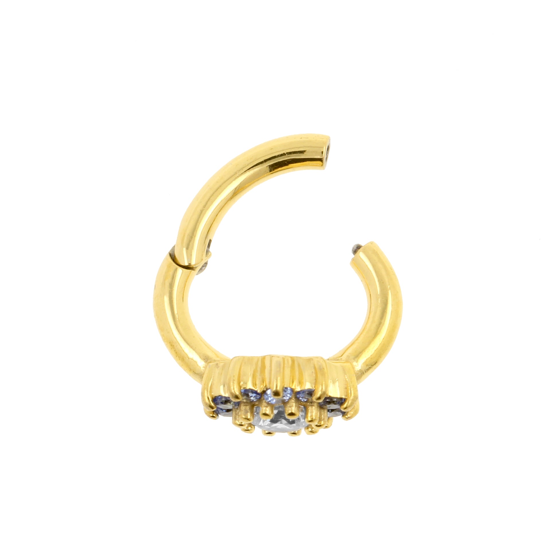 Nickel-Free Stainless Steel Zirconia Belly Ring Clicker - Flower Clear / Blue