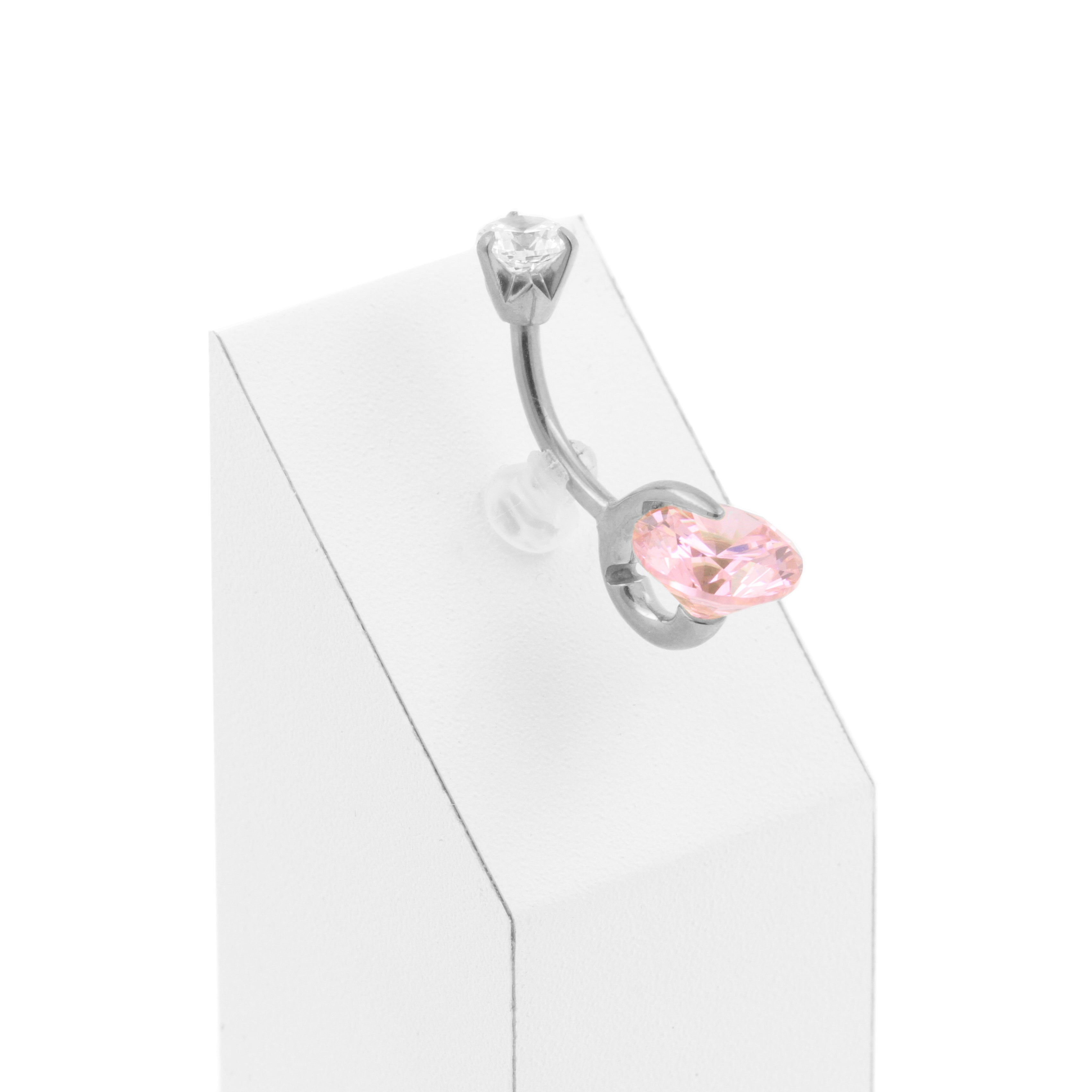 Elegant and refined — this belly bar features a pink cubic zirconia in a floating style for maximum visibility and sparkle. Crafted from premium surgical steel with a smooth, polished finish for long-lasting comfort and a refined look.