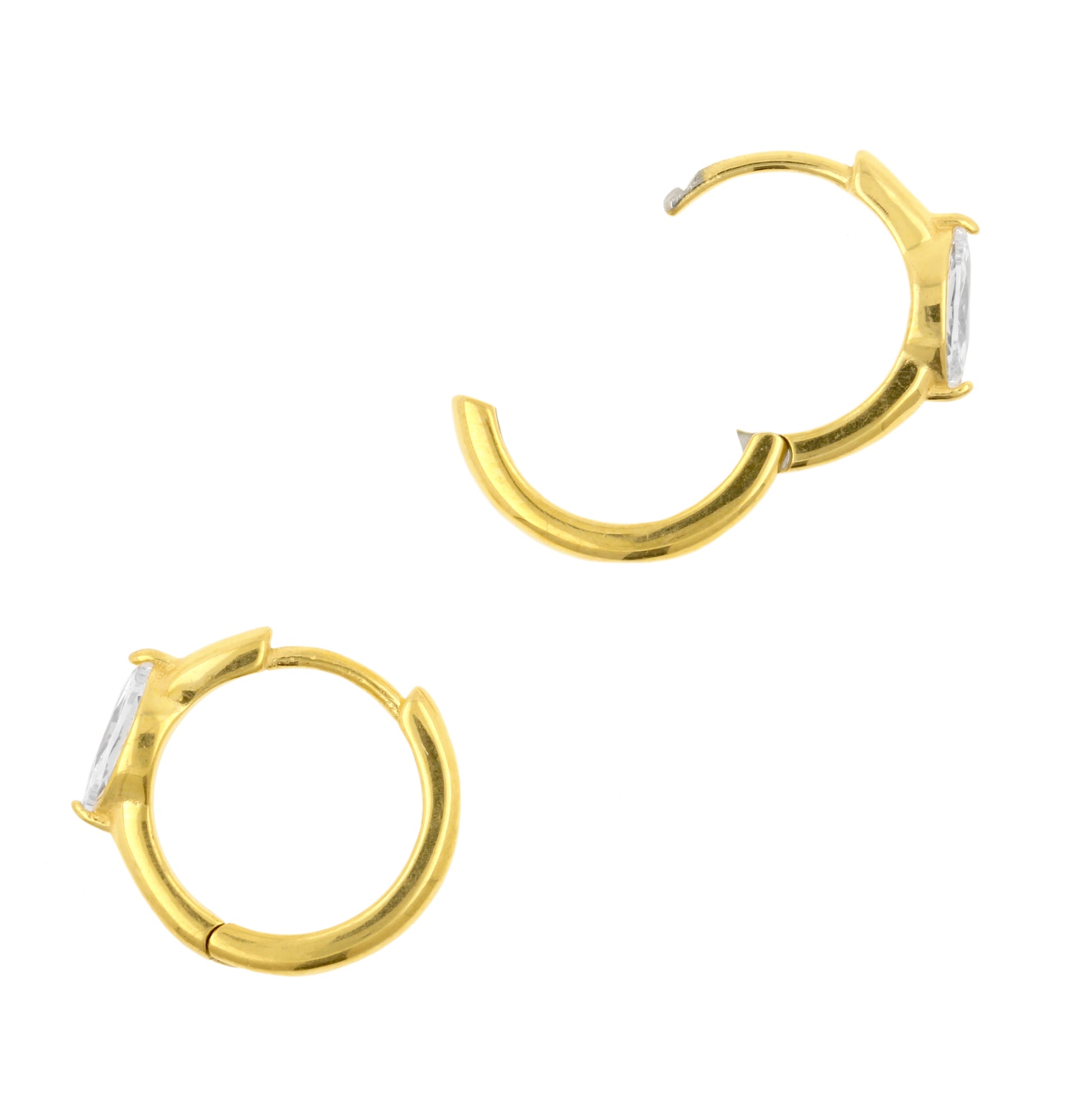 Surgical Steel Click Hoop Earrings - Zirconia Teardrop - Gold