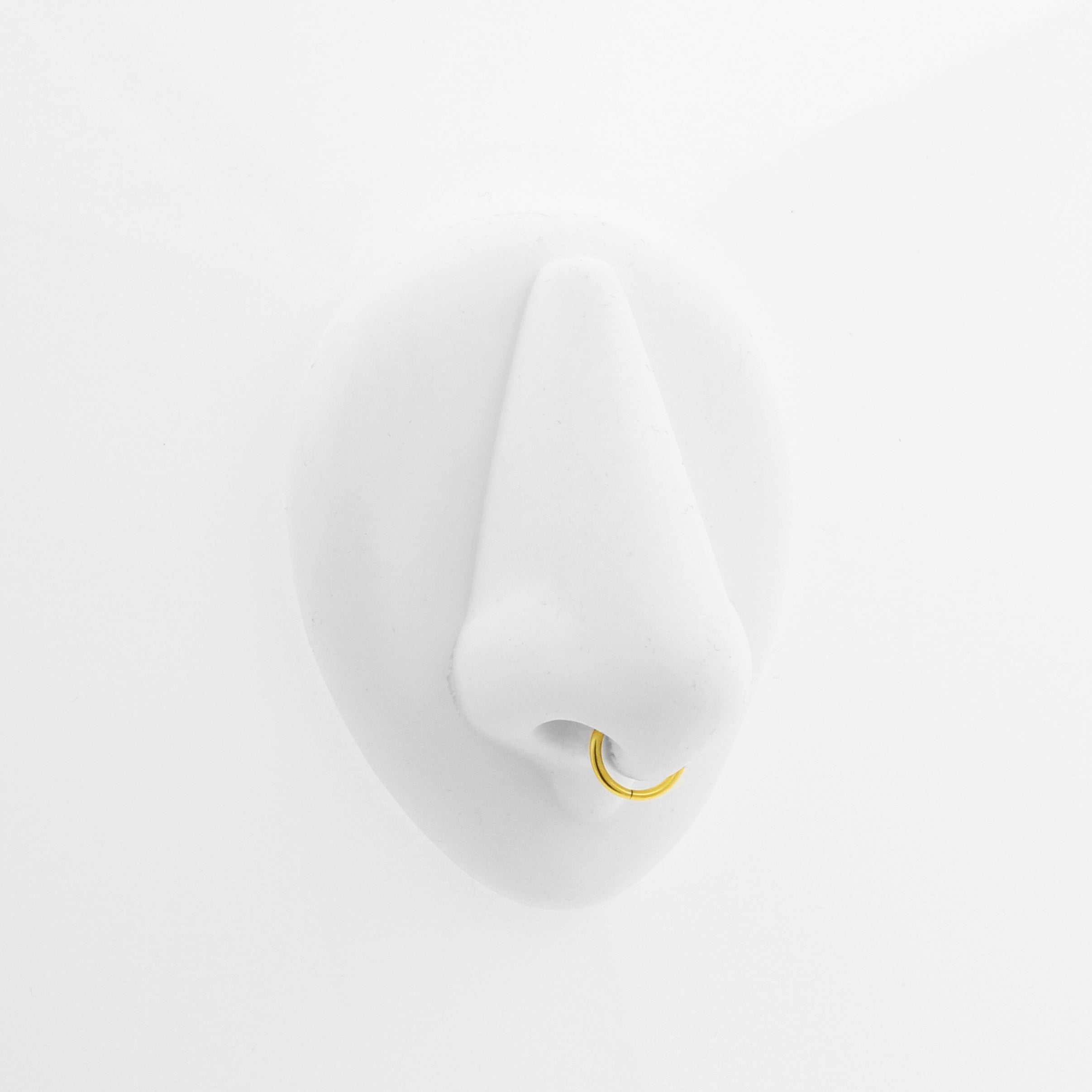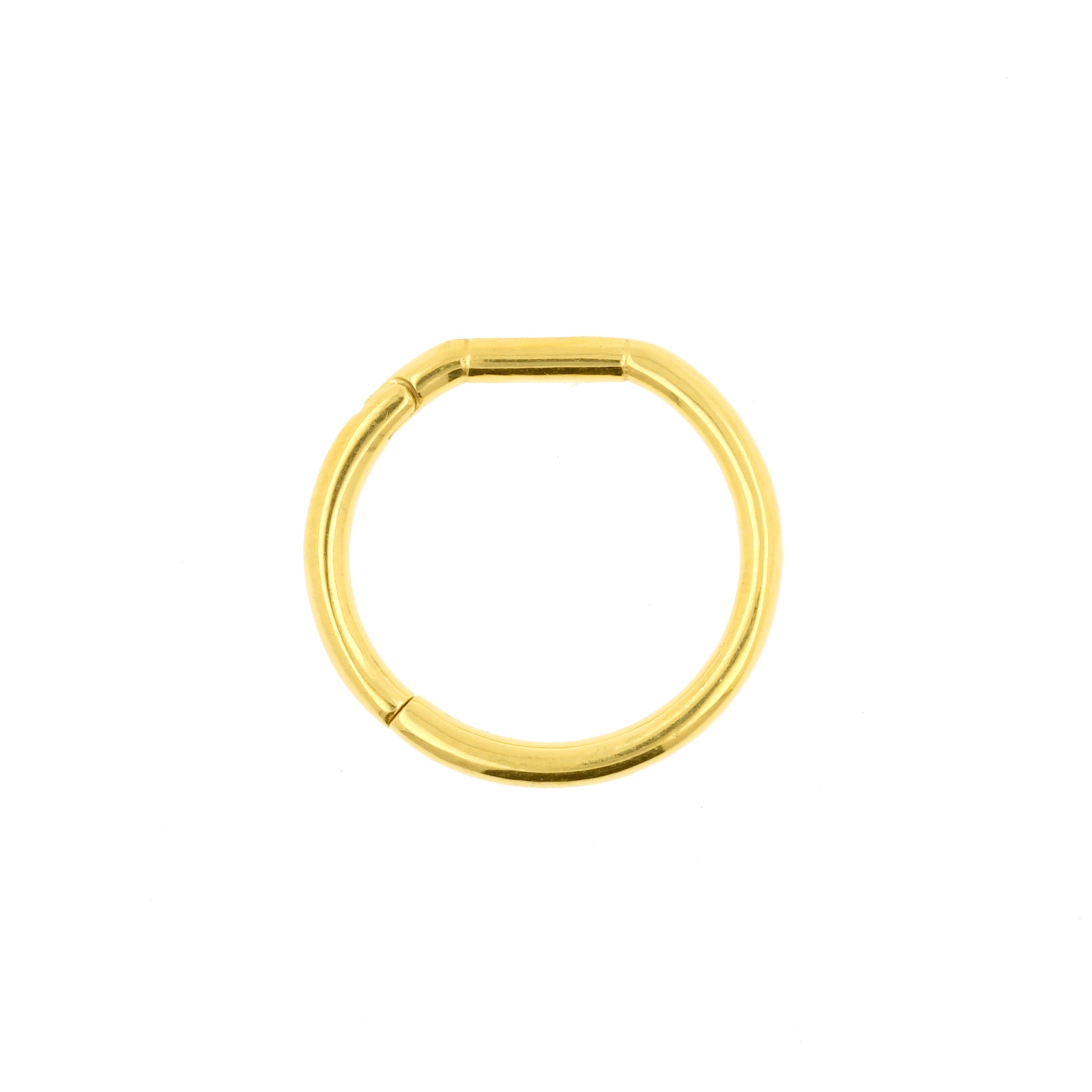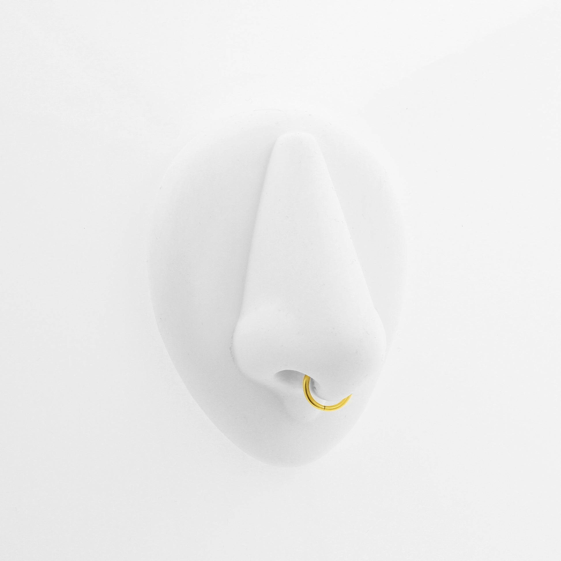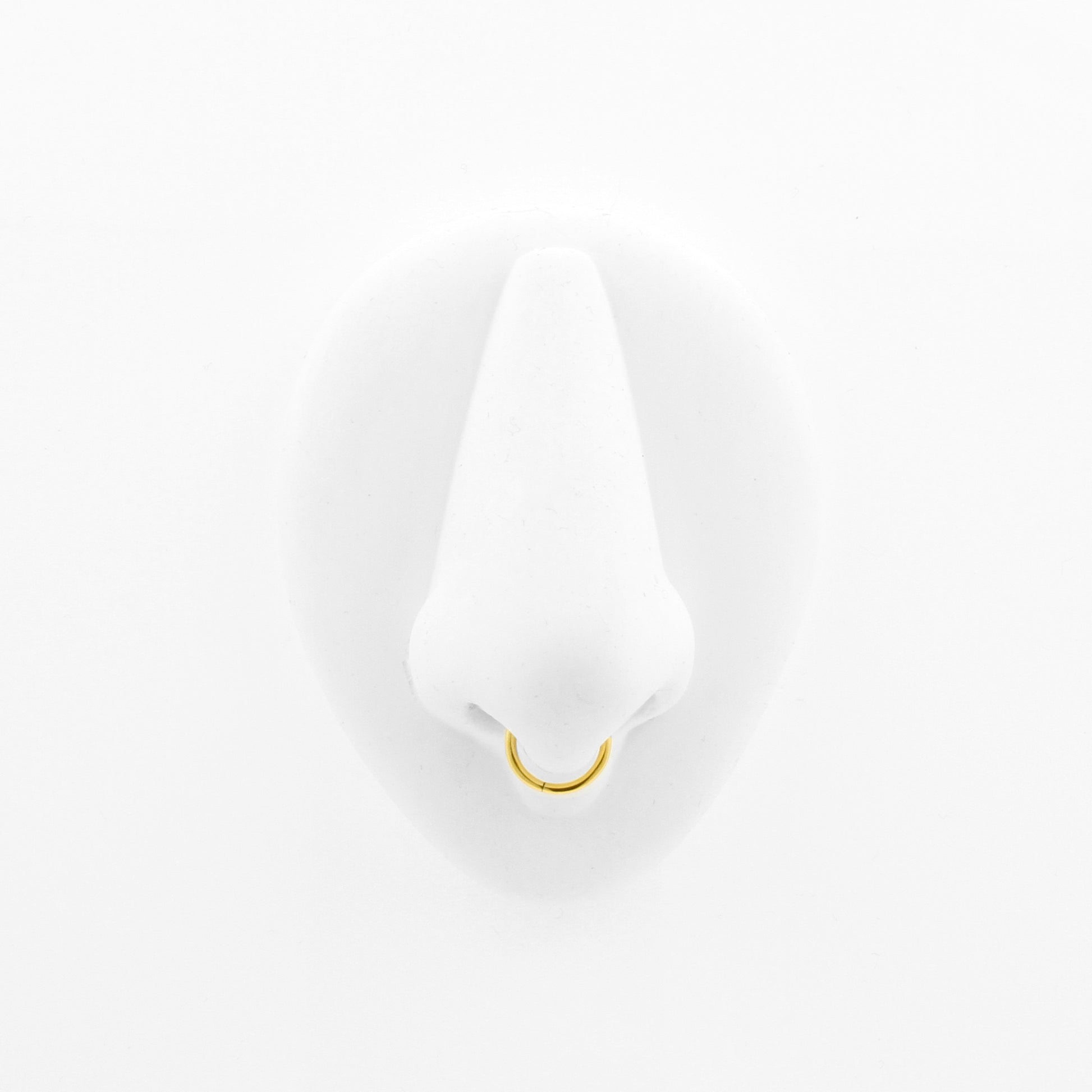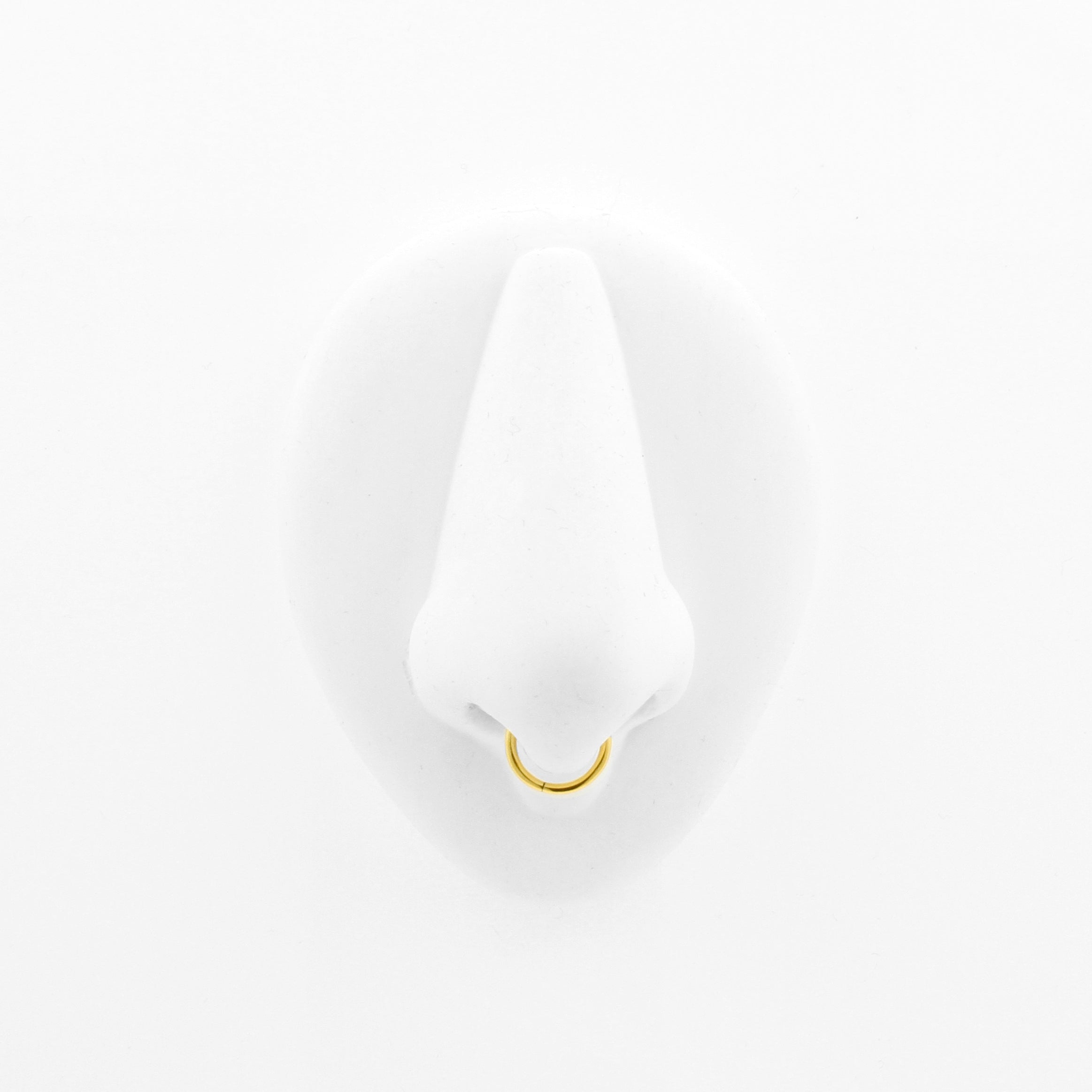 Pretty basics! The perfect piercing ring if you like the look of a smooth segment ring, but need something that's easy to use as well. The segment of this click ring is hinged and can easily be opened and closed. The closing mechanism is very easy to use and allows a smooth insertion into your piercings. Made of surgical steel and available in different sizes!