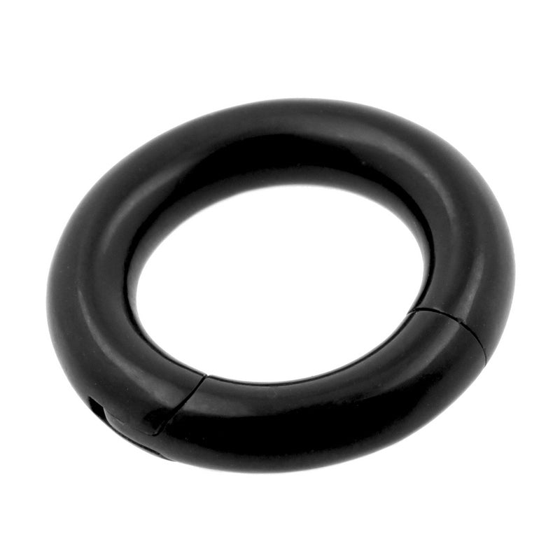 Pretty basics! The perfect piercing ring if you like the look of a smooth segment ring, but need something that's easy to use as well. The segment of this click ring is hinged and can easily be opened and closed. The closing mechanism is very easy to use and allows a smooth insertion into your piercings. Made of black P.V.D. coated surgical steel and available in different colors and sizes!