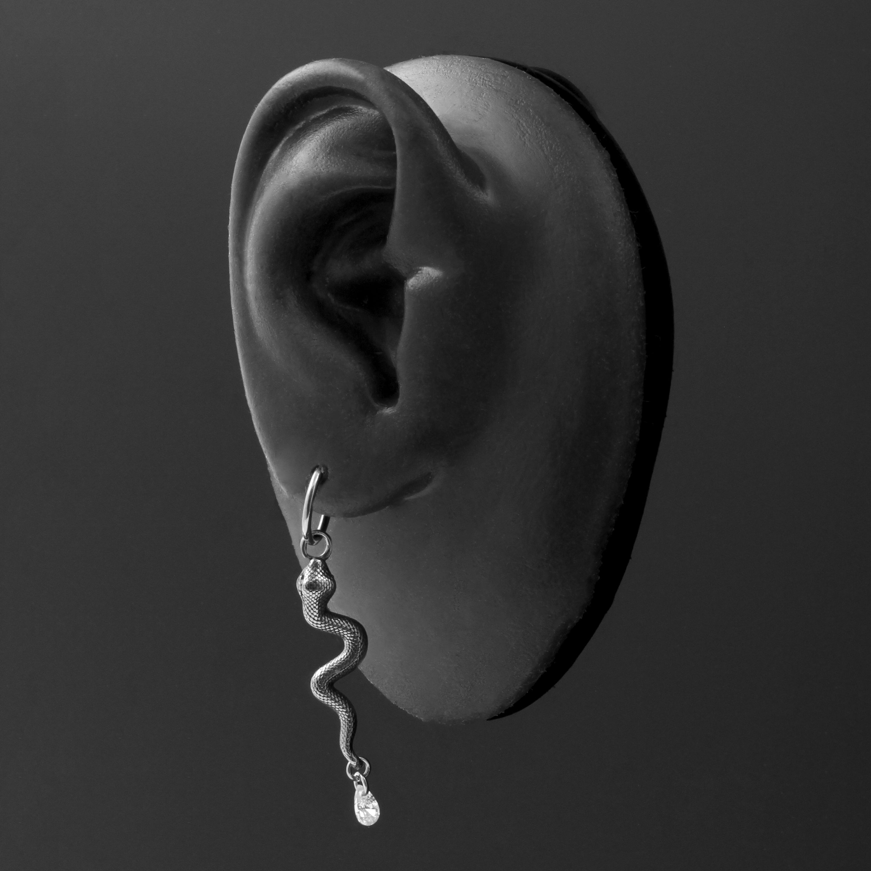 Surgical Steel Click Ring Charm - Zirconia Snake Right Silver
