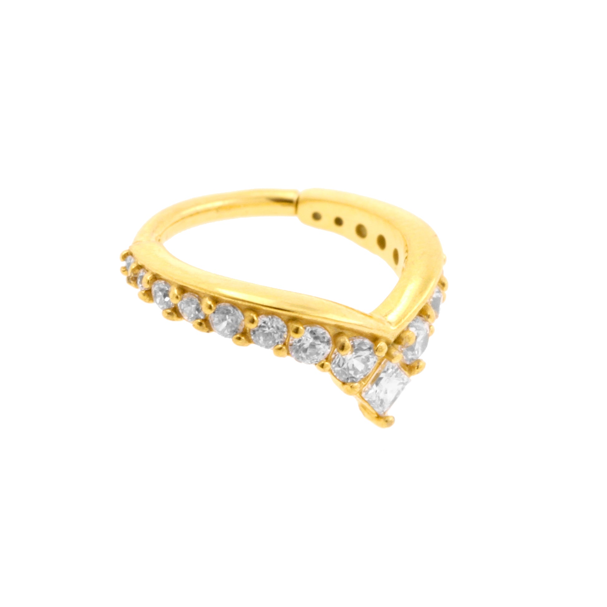 Surgical Steel Click Ring - Zirconia Tiara Gold