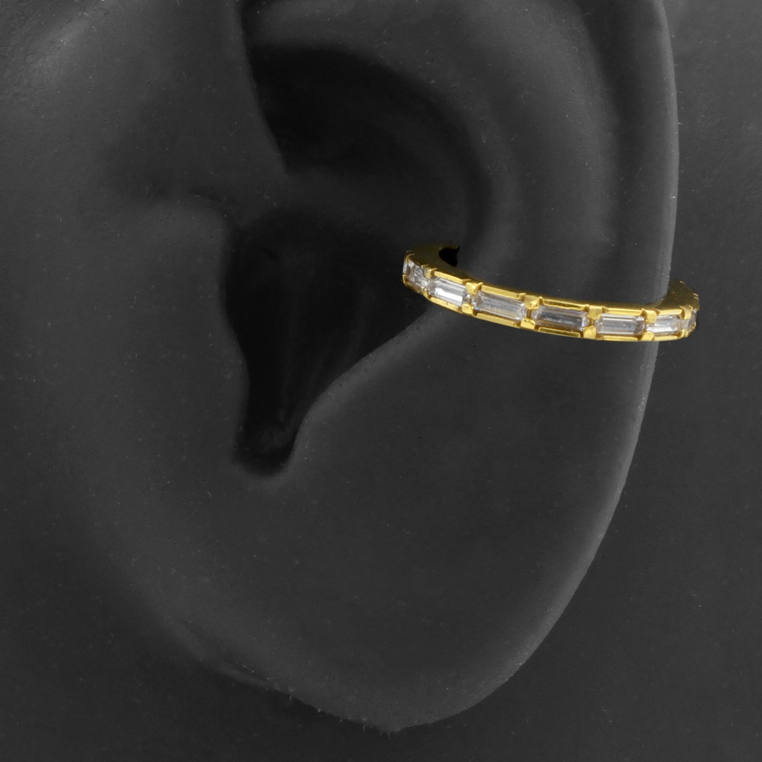 Surgical Steel Conch Clicker - Set With Baguette Zirconia Gold