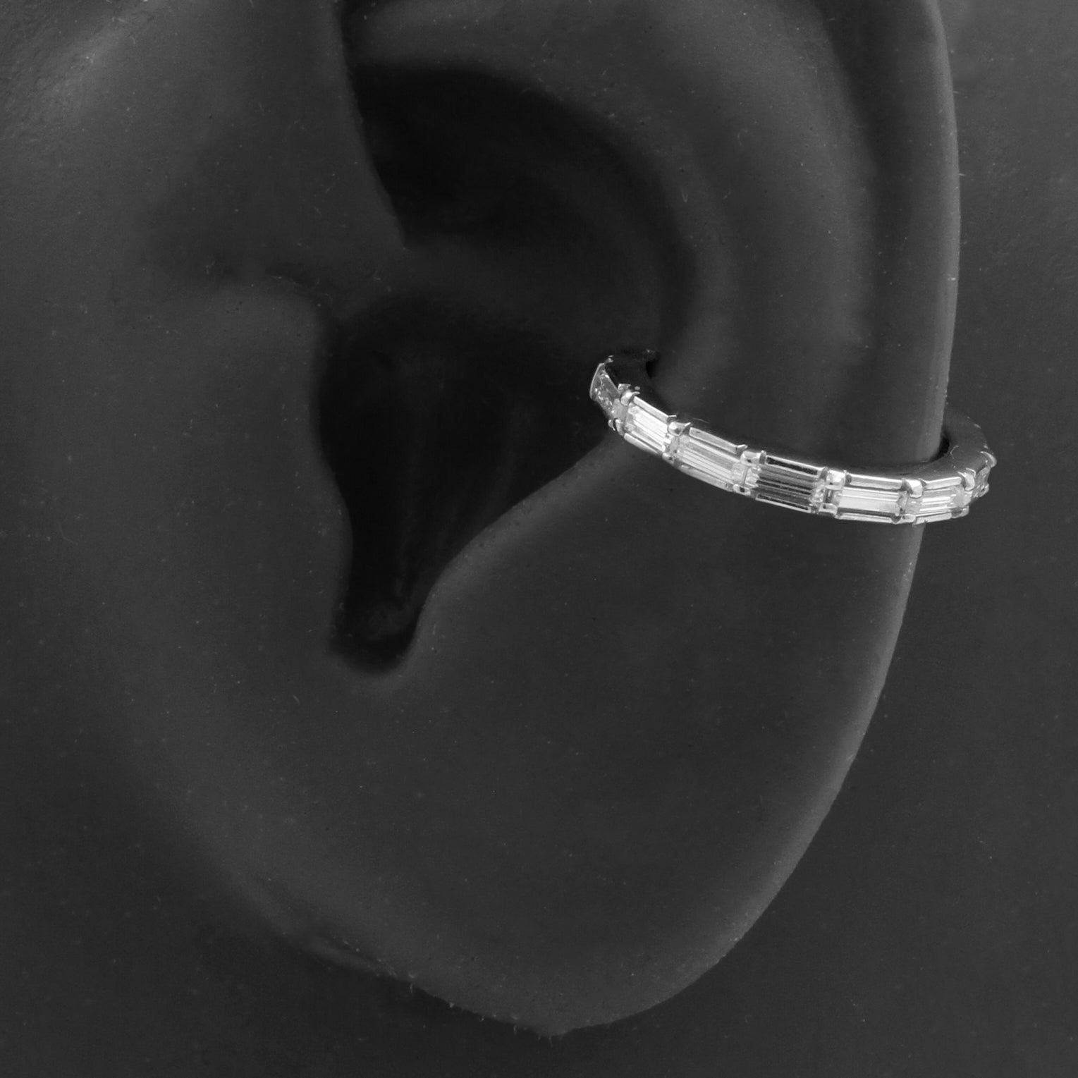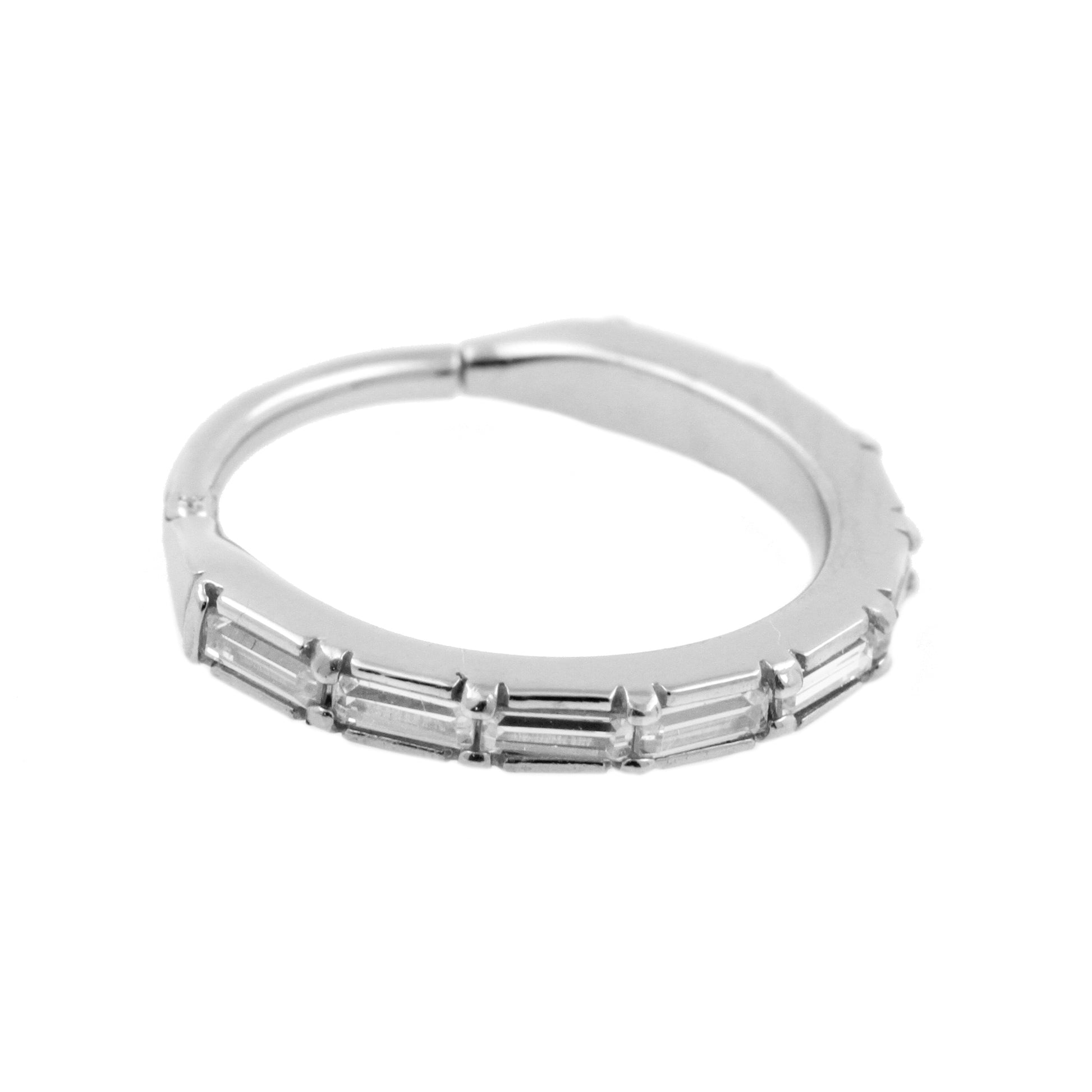 Surgical Steel Conch Clicker - Set With Baguette Zirconia Silver