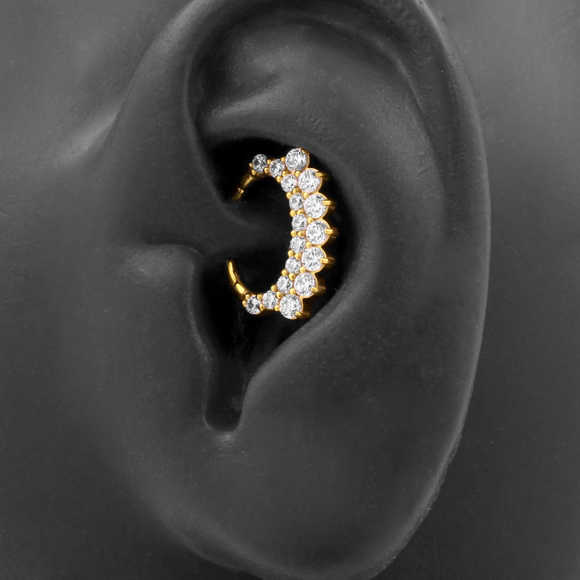 Surgical Steel Daith Clicker - Zirconia Crown Gold