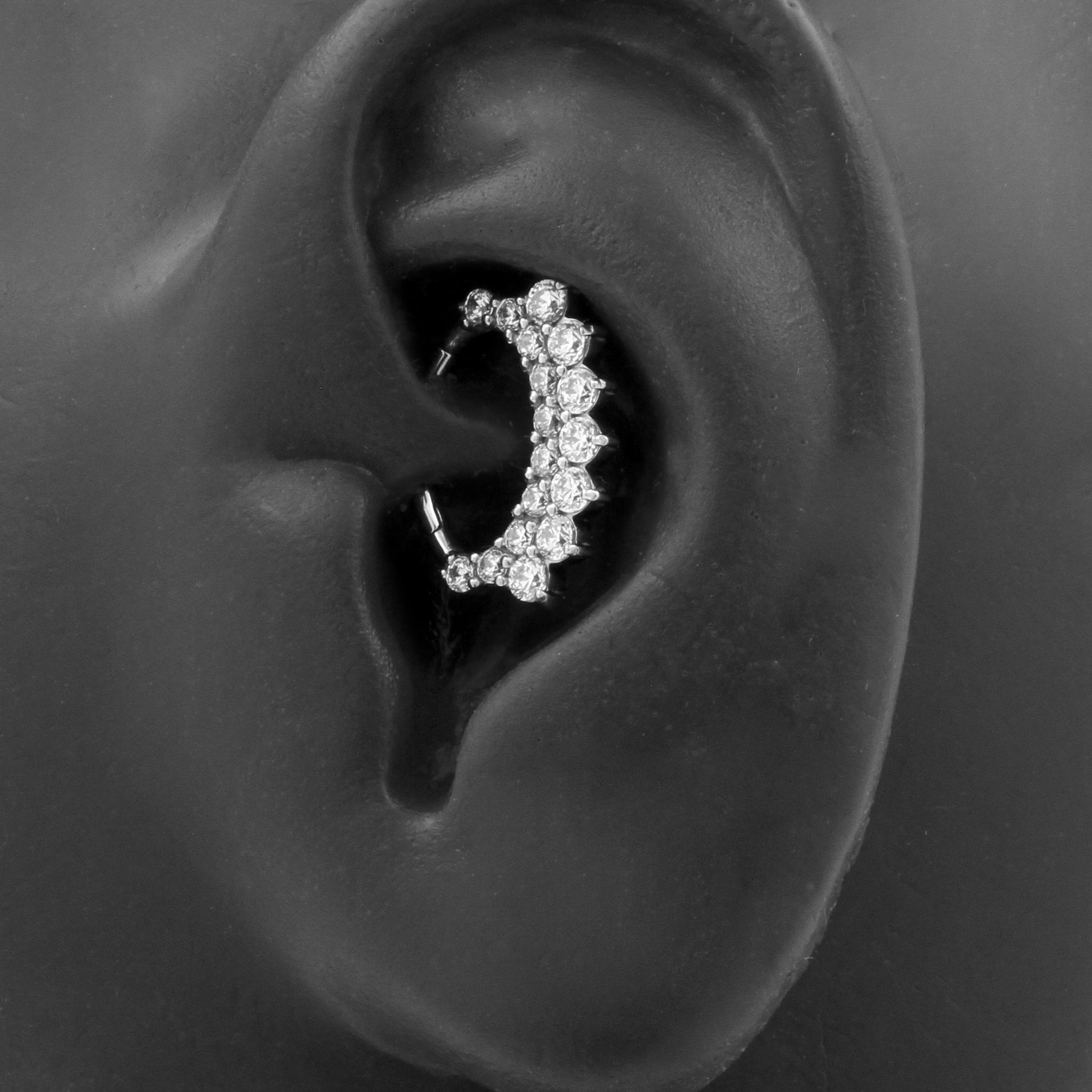 Surgical Steel Daith Clicker - Zirconia Crown Silver