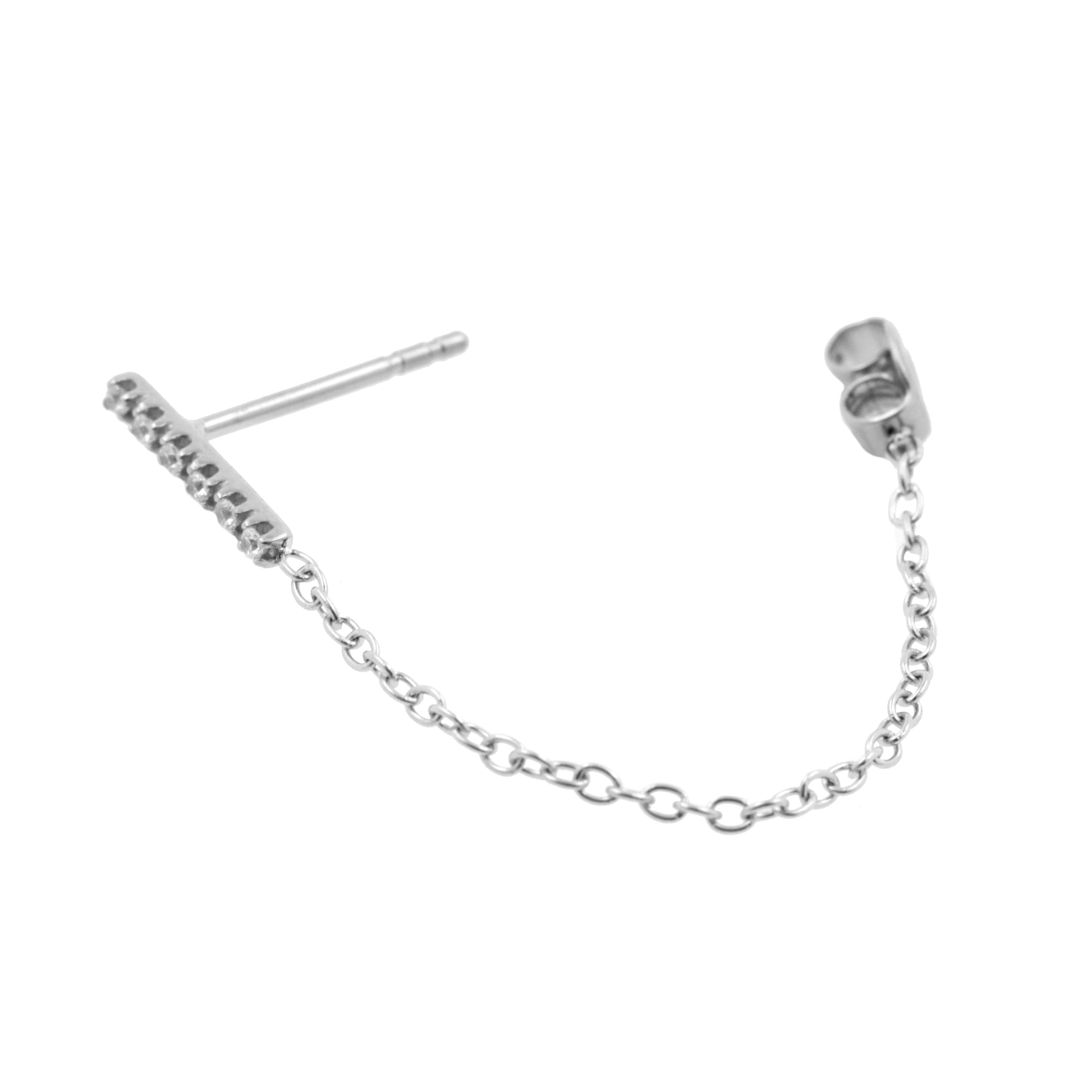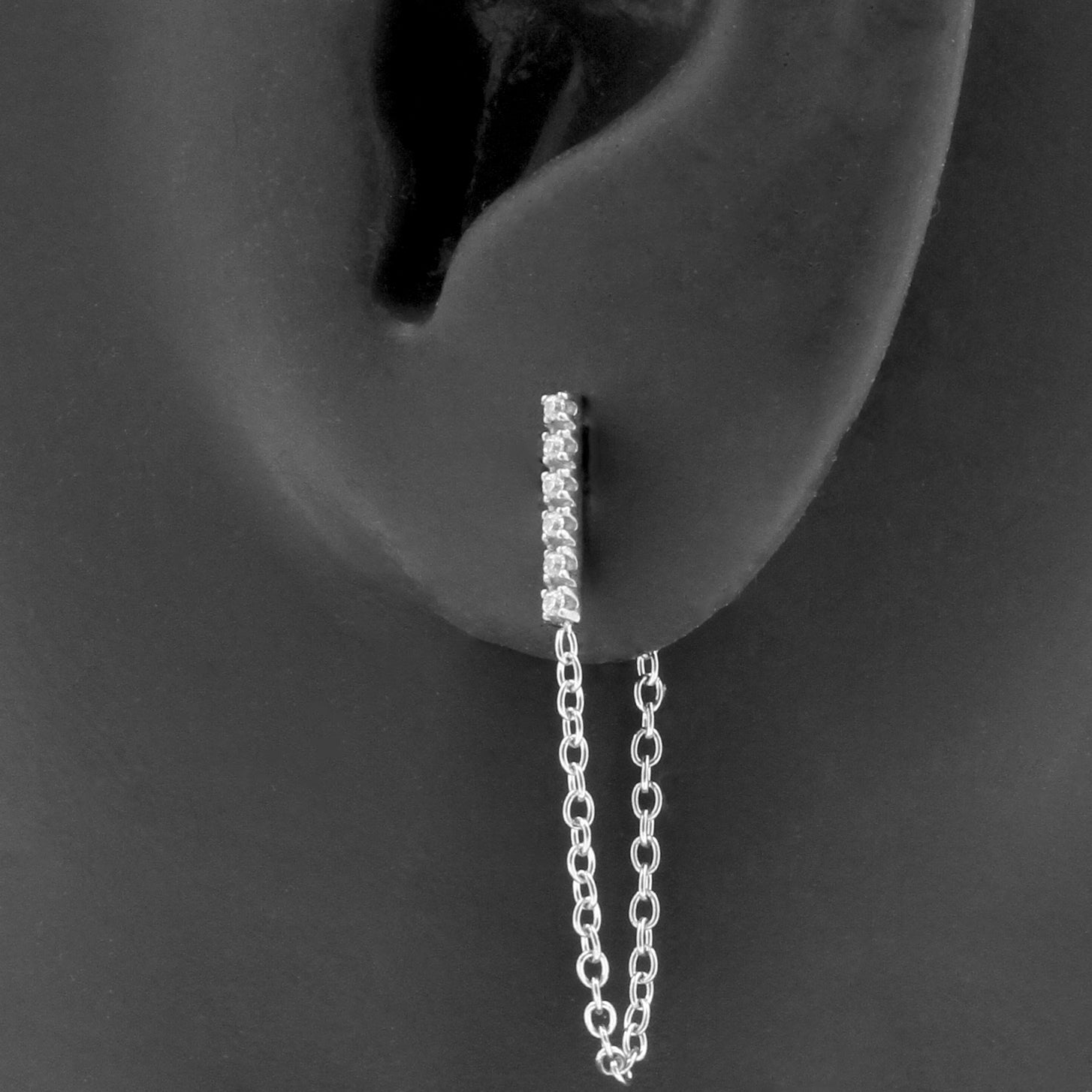Surgical Steel Ear Studs Zirconia Bar With Chain Jacket Silver