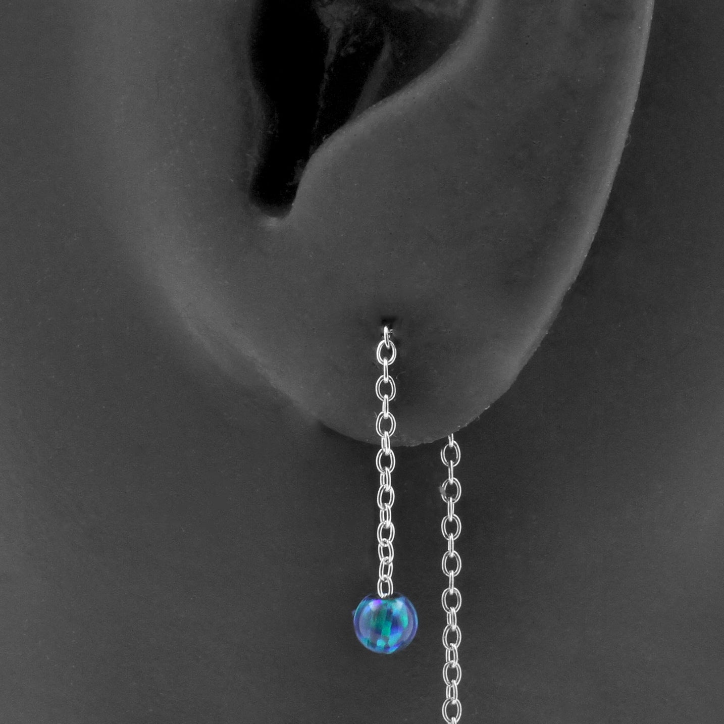 Surgical Steel Ear Threader Opal Ball Black Opal