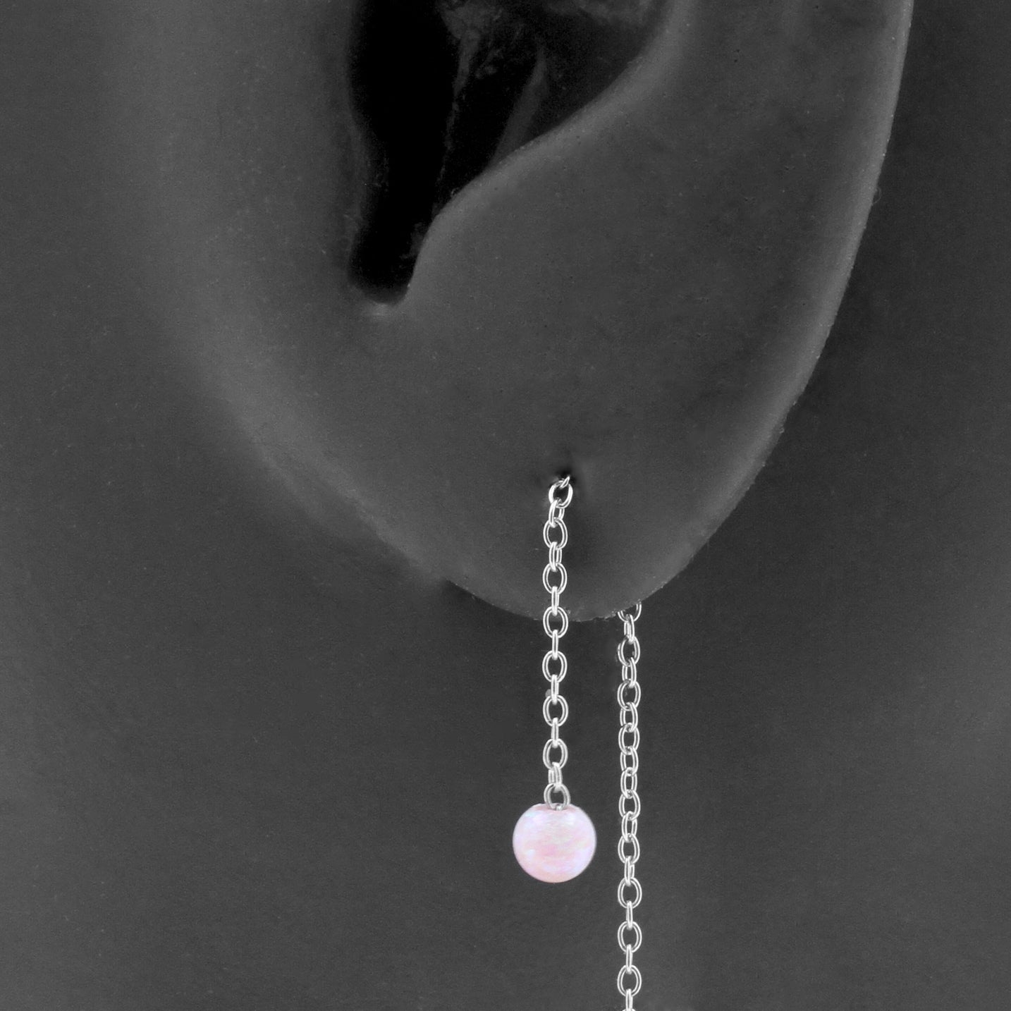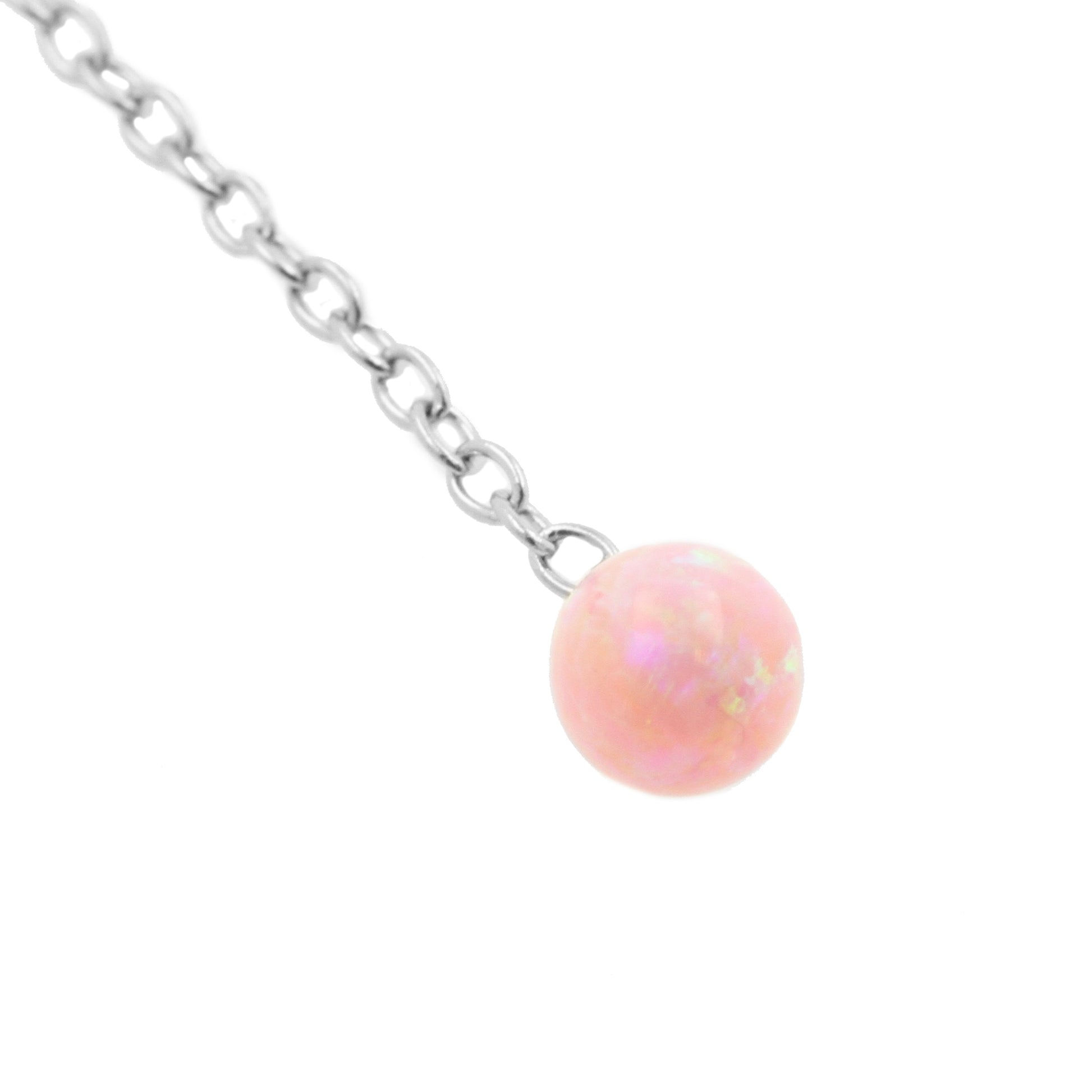 Surgical Steel Ear Threader Opal Ball Pink Opal