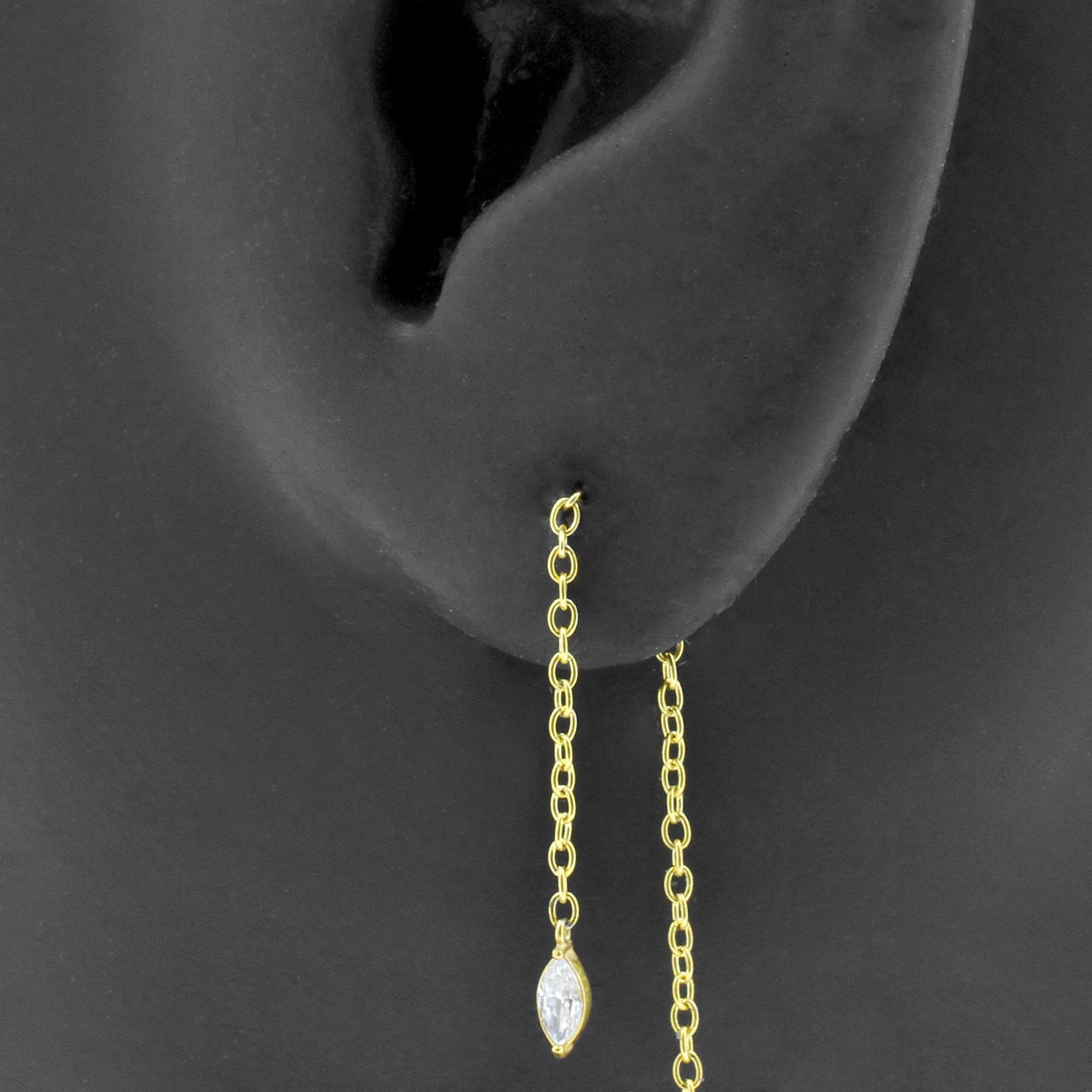 Surgical Steel Ear Threader - Zirconia Marquise Gold