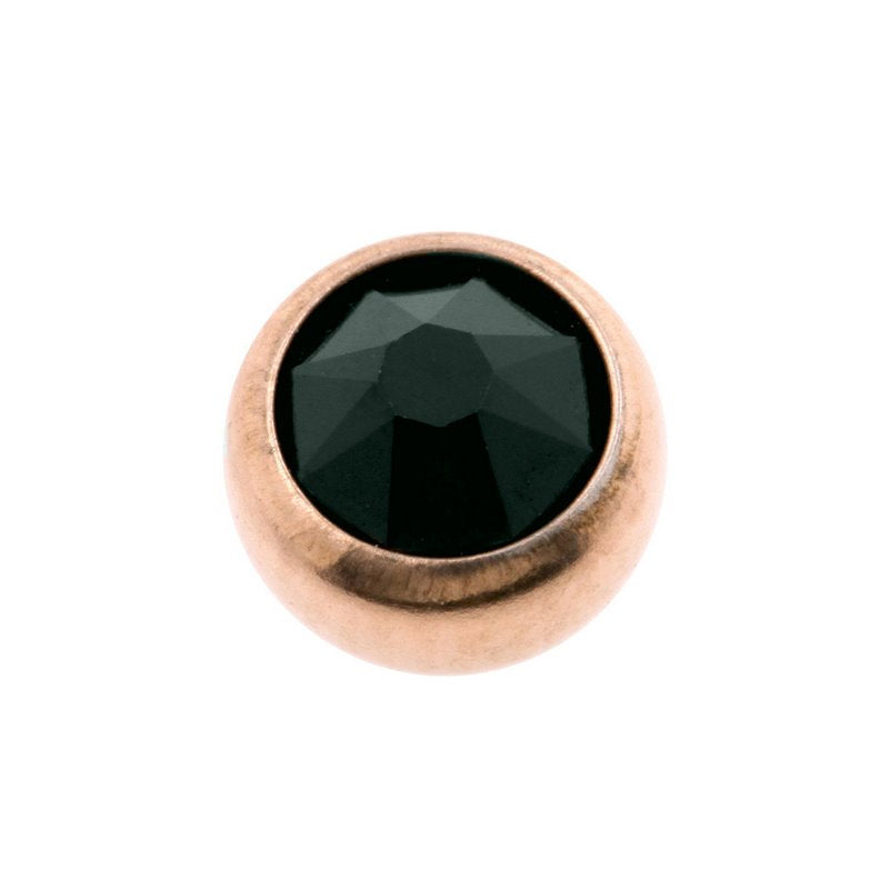The essential basics, with a touch of rose gold! These threaded, jewelled balls are are set with a small crystal and made of surgical 316L steel, with a rose gold P.V.D coating. The new coating techniques that are used to create this piece of jewelry ensure top notch quality and a wear-resistant, high sheen finish. Great to keep at hand whenever you need a replacement, or simply want to switch to another size. Our threaded balls are a perfect match with our rose gold P.V.D. coated piercing jewelry range.