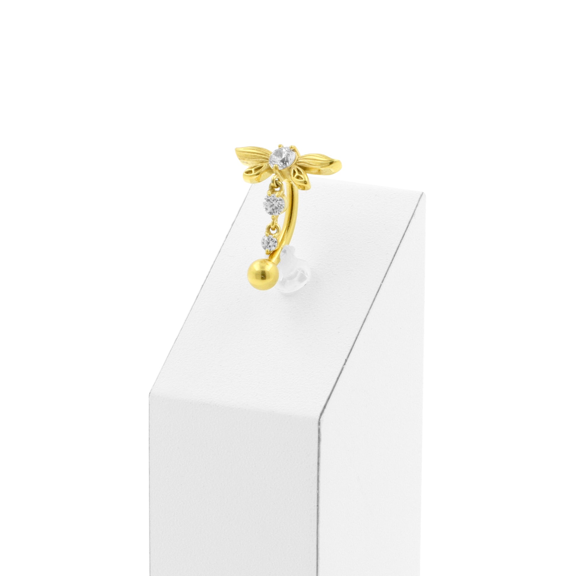 Surgical Steel Navel Curve Zirconia Dangle Gold
