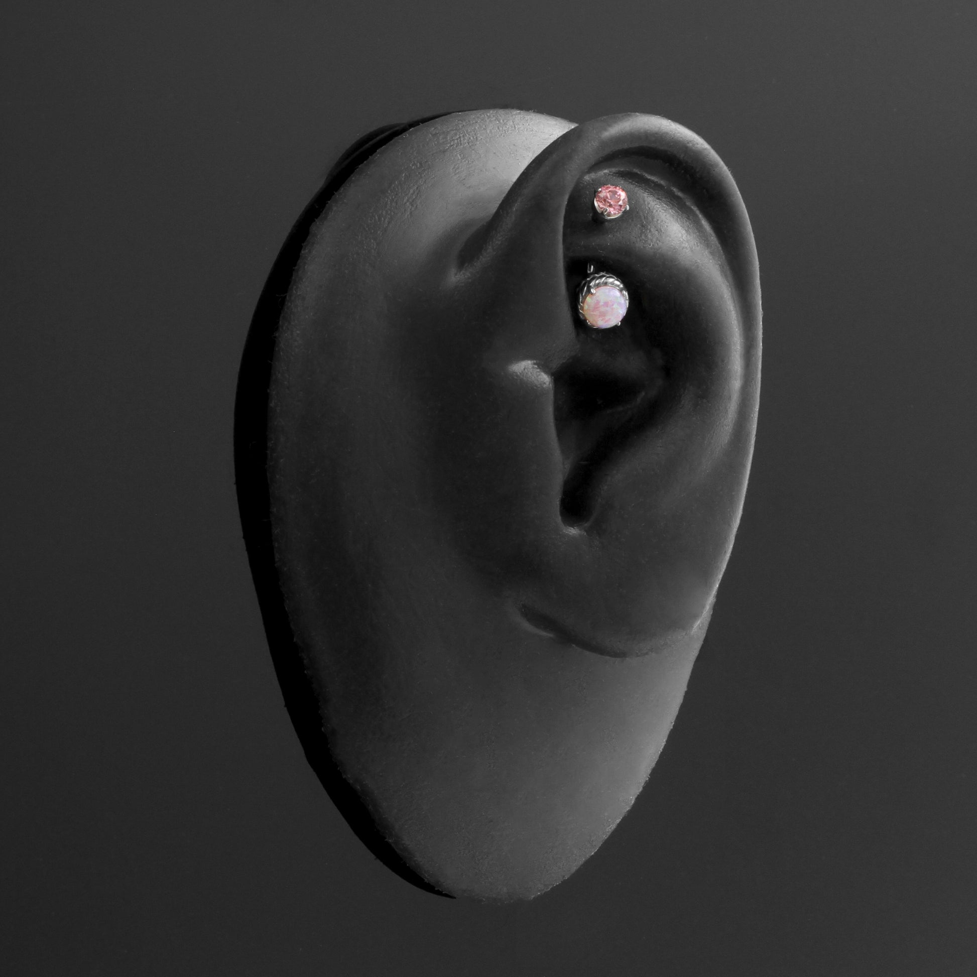 Surgical Steel Opal Zirconia - Rook Piercing Pink Opal