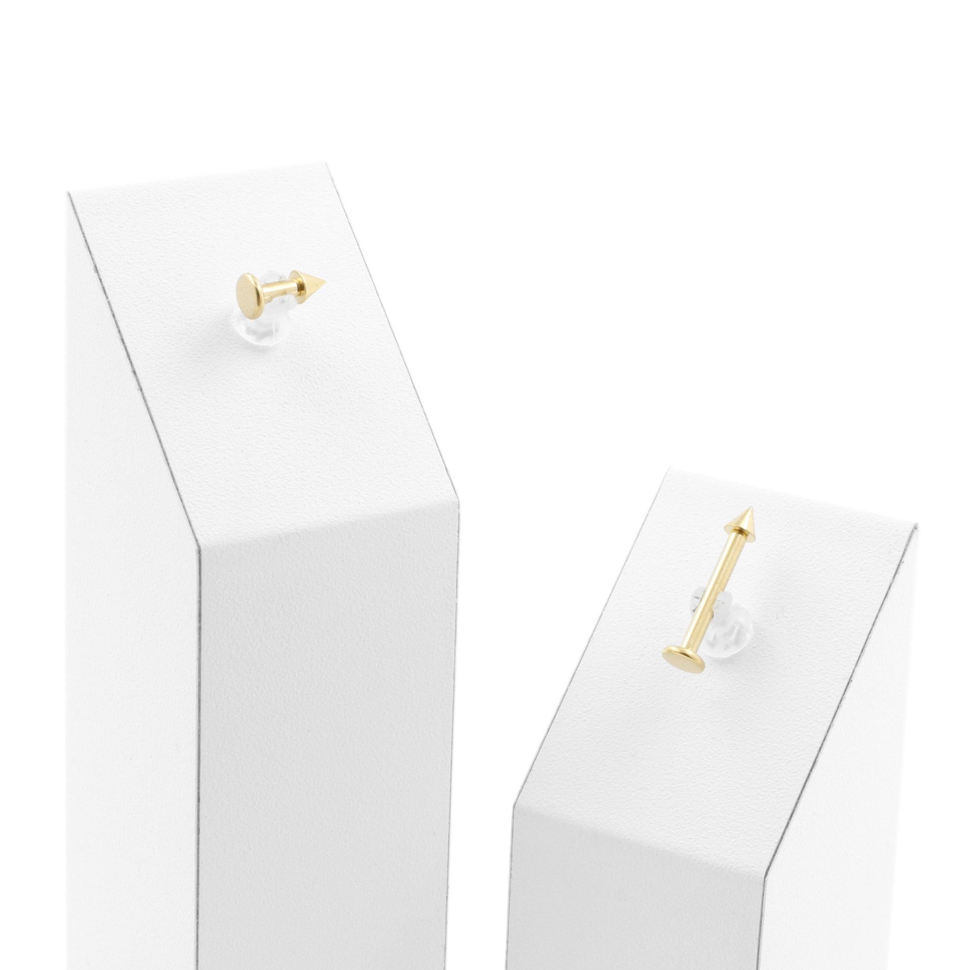 Edgy with a golden edge – the spike is back in style. This titanium flatback stud features an 18K gold P.V.D. coating that matches real gold. The flat back sits comfortably and won’t press into your neck or head when lying down. Water-resistant and colorfast for long-lasting wear. A complete piece that instantly elevates your ear stack.