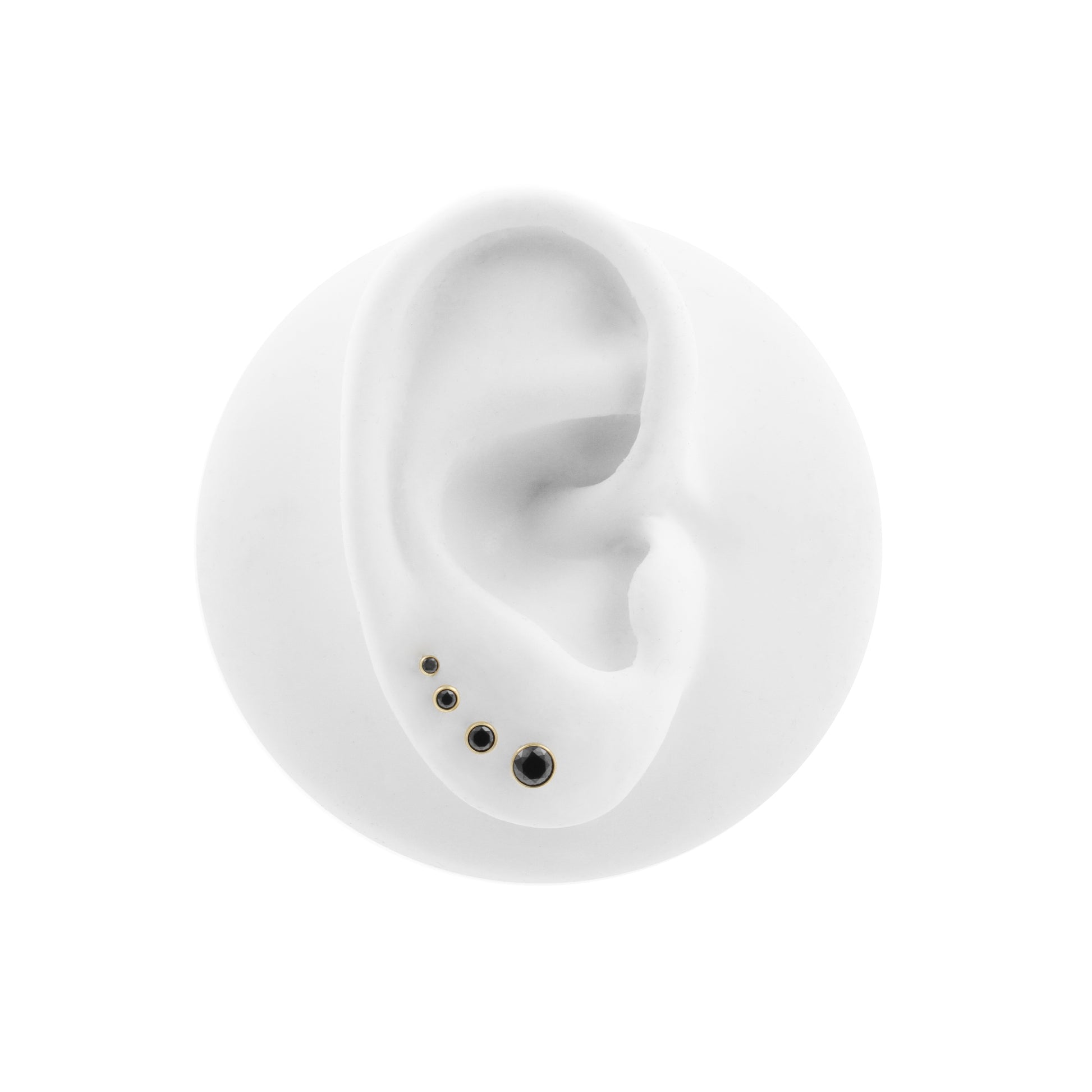 The black zirconia provides a neat, polished look, and the 18K gold P.V.D. coating offers a warm gold tone that matches real gold jewelry. Available in four sizes to ensure the right balance and fit for your piercing.