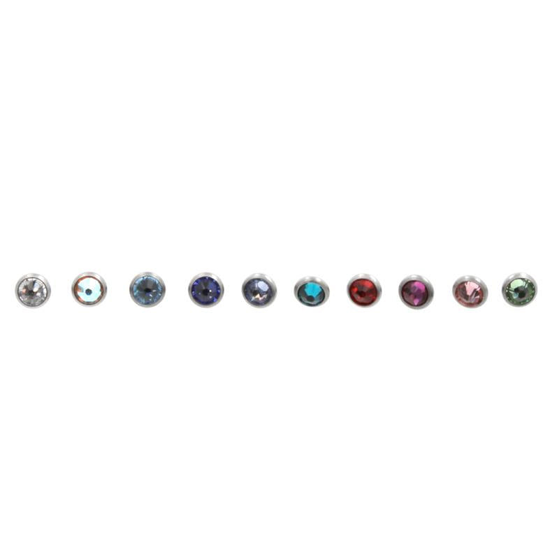 Specially for our internally threaded mini labrets! These beautiful jewelled discs are perfect if you want to change the color of your piercing jewelry or if you need an extra spare disc. The titanium disc is set with a sparkly, faceted crystal. The discs will fit our 1,2 mm internally threaded labrets. The thread of the discs measures 1 mm in thickness. The discs are available in 2 different diameters.