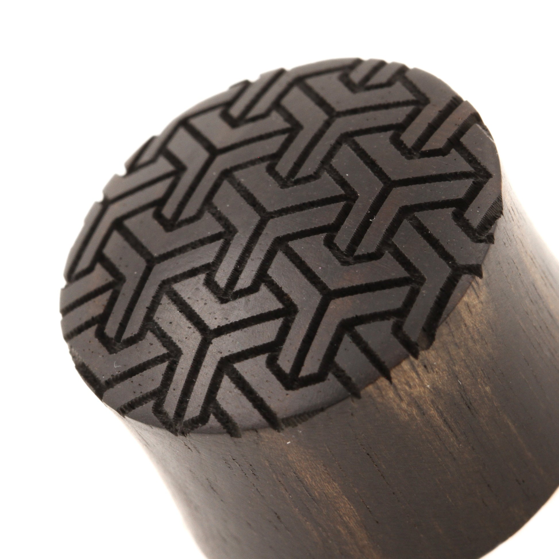 Wood Stacked Cubes Pattern Plugs - Areng Black