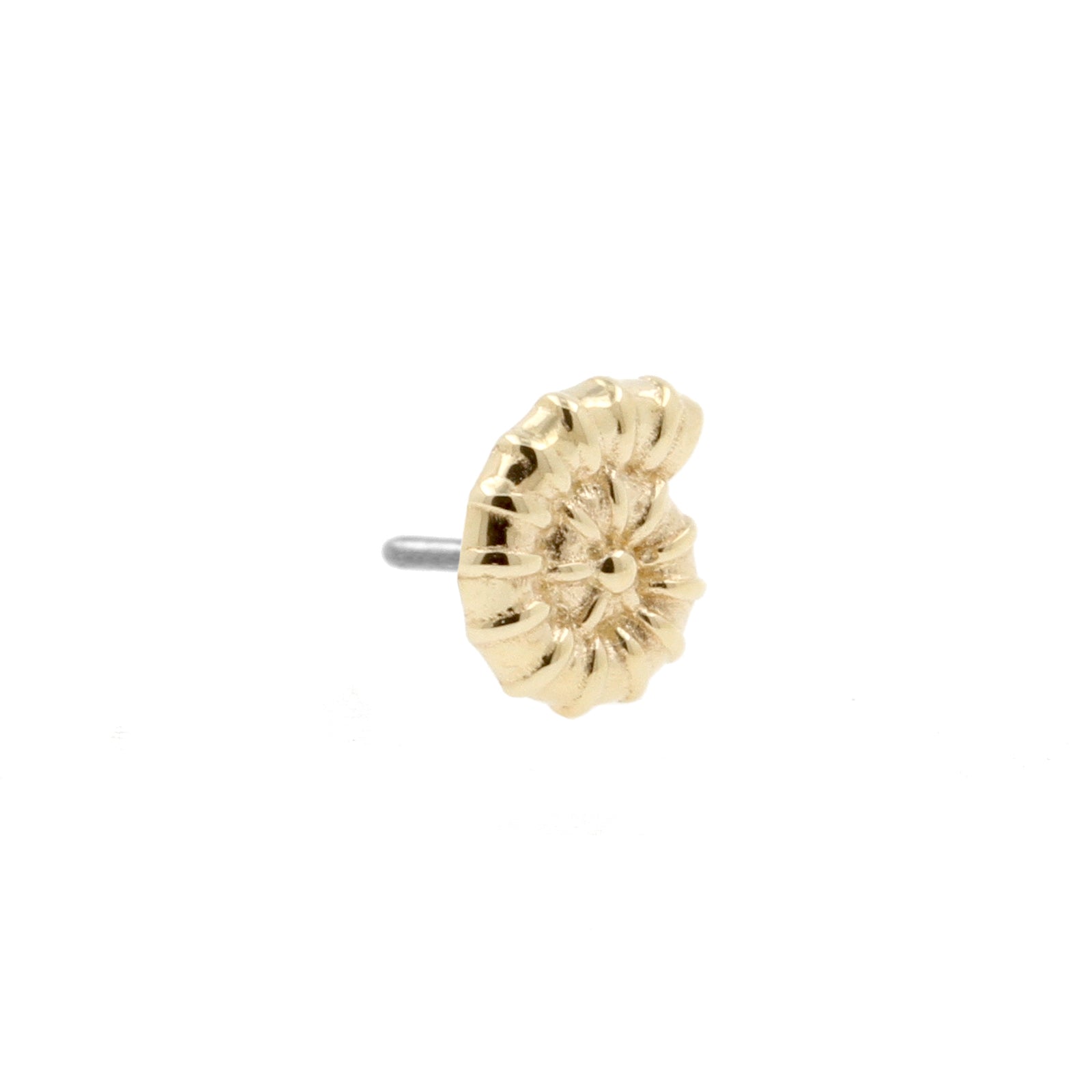 14 Karaats Gouden Ammoniet geeft je piercing direct een stijlvolle uitstraling. Deze Threadless Top is vervaardigd uit 14 Karaats Goud. Dankzij het threadless systeem combineer je deze top eenvoudig met al onze staafjes, die wij Threadless Base noemen, voor een perfecte pasvorm en ultiem draagcomfort.