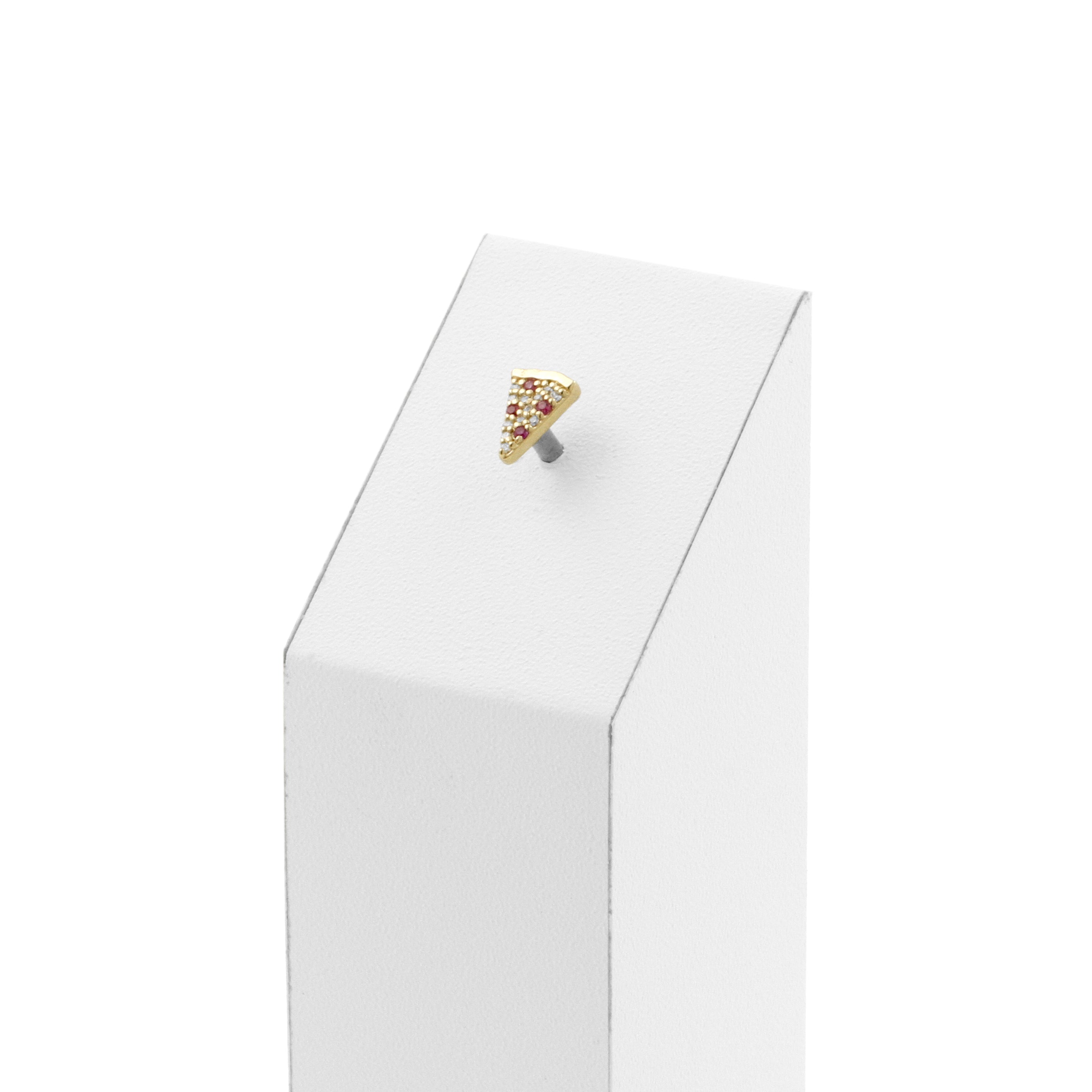 14 Karaats Gouden Pizzapunt Met Robijn geeft je piercing direct een stijlvolle uitstraling. Deze Threadless Top is vervaardigd uit 14 Karaats Goud. Dankzij het threadless systeem combineer je deze top eenvoudig met al onze staafjes, die wij Threadless Base noemen, voor een perfecte pasvorm en ultiem draagcomfort.