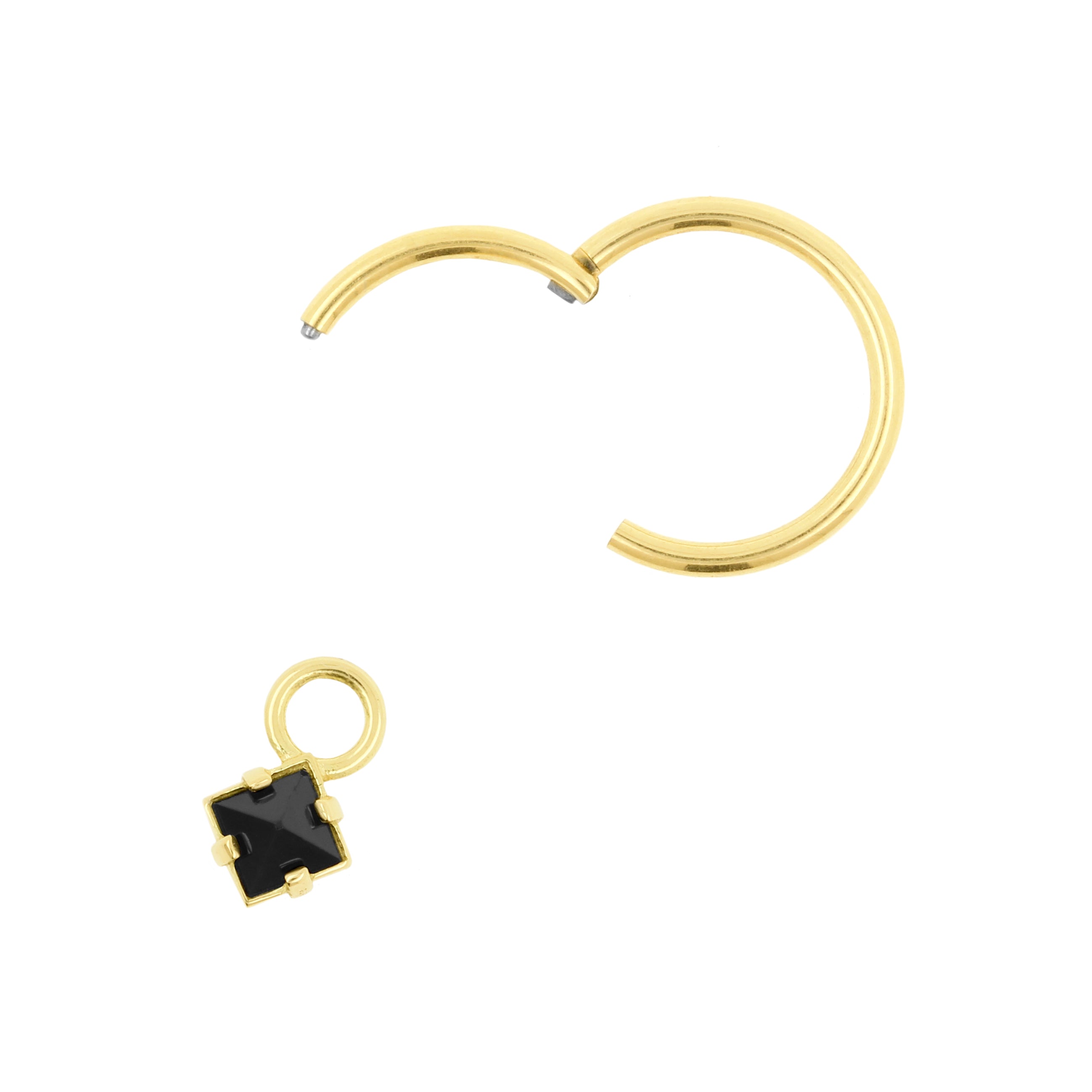 Een verfijnd accent dat je clickring net dat extra detail geeft. Deze bedel is uitgevoerd in massief 18 karaats goud en afgewerkt met een lab-created nano gem in zwart (piramide slijpvorm).