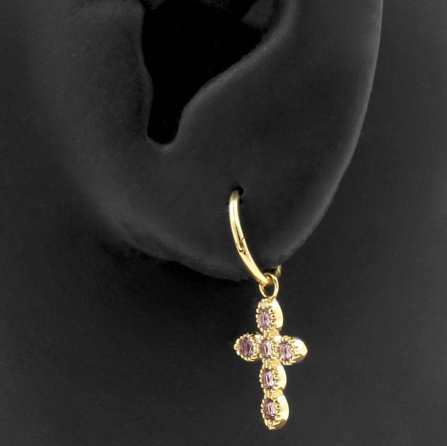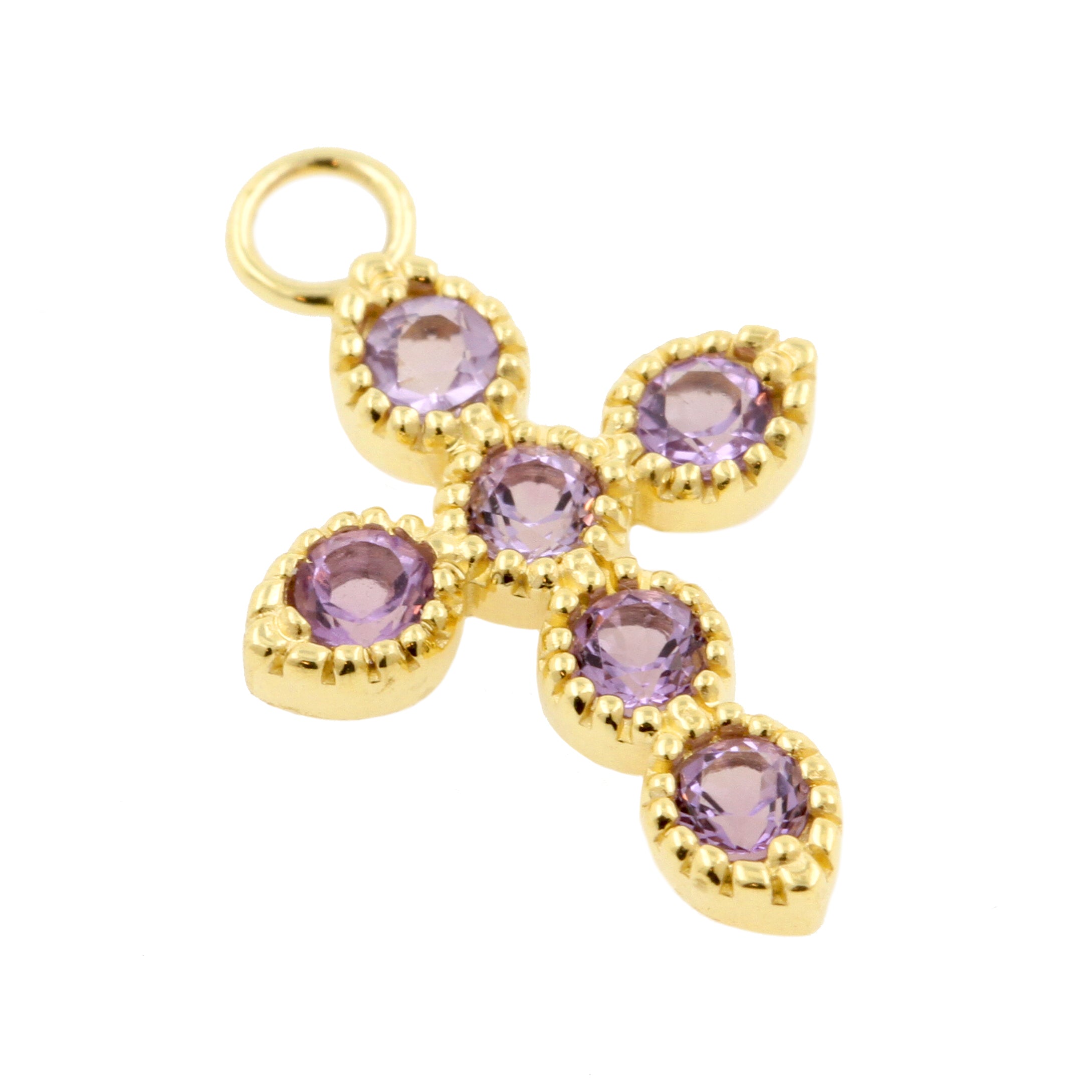 18 Karaats Gouden Bedel - Cross Roze Amethist