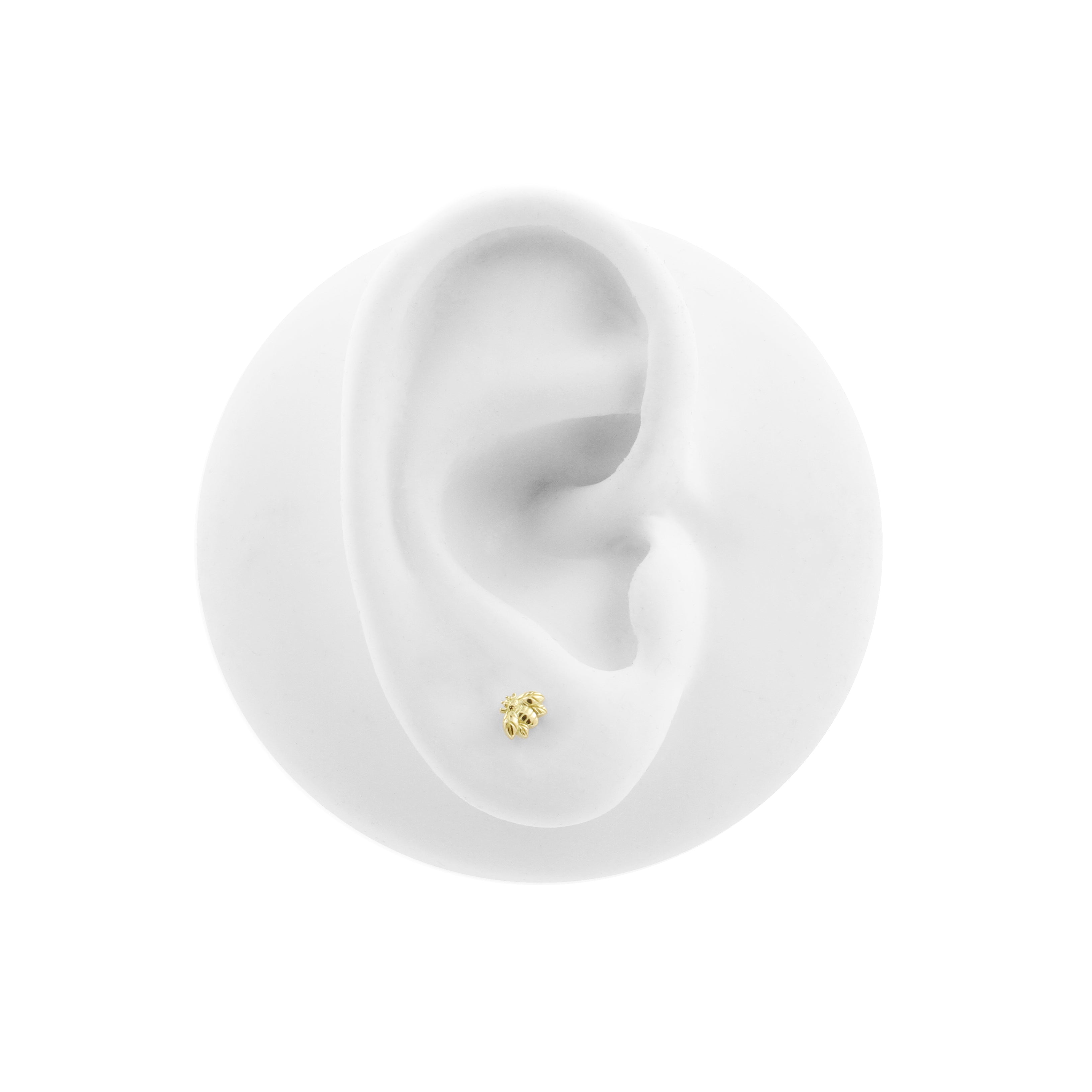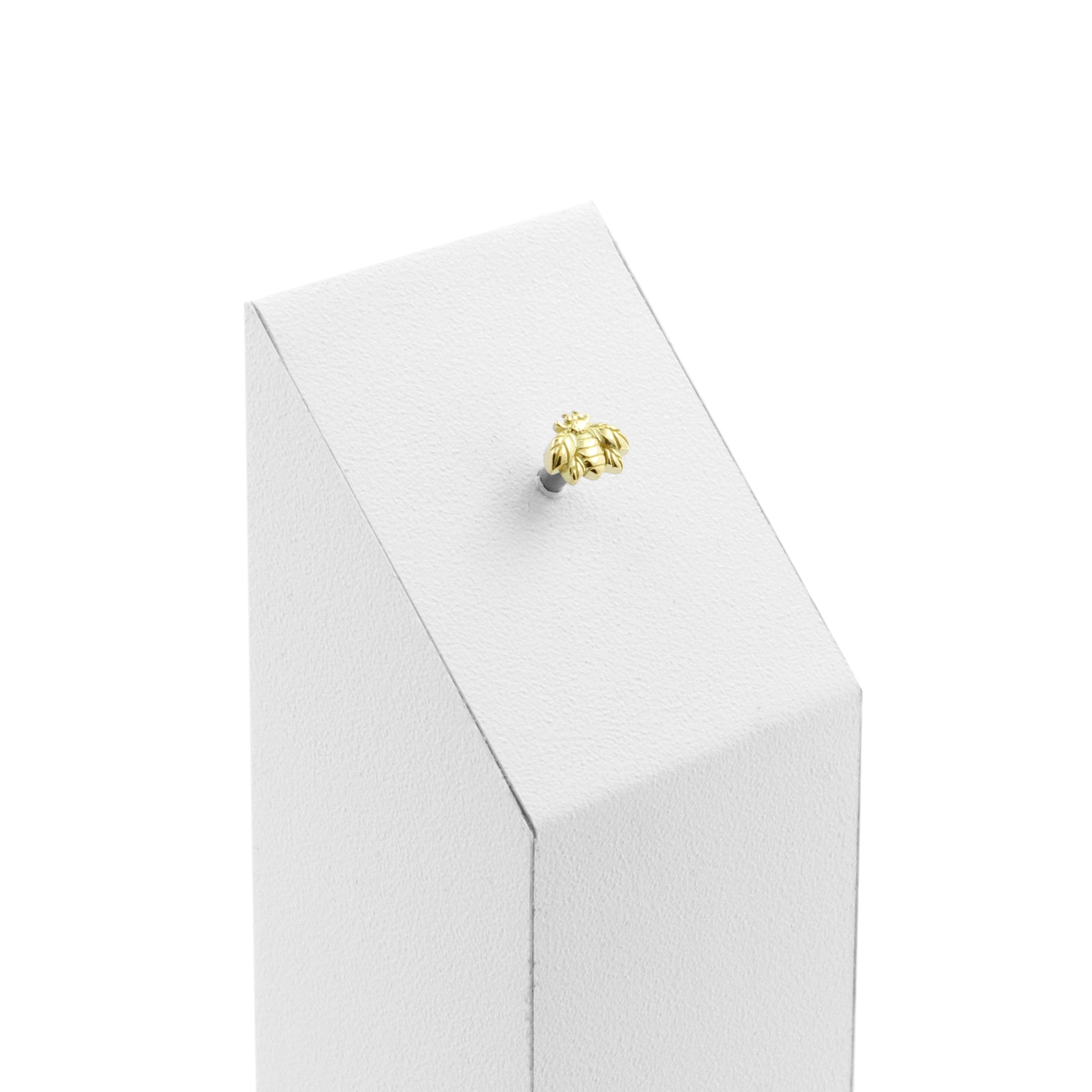 18 Karaats Gouden Bij geeft je piercing direct een stijlvolle uitstraling. Deze Threadless Top is vervaardigd uit 18 Karaats Goud. Dankzij het threadless systeem combineer je deze top eenvoudig met al onze staafjes, die wij Threadless Base noemen, voor een perfecte pasvorm en ultiem draagcomfort.