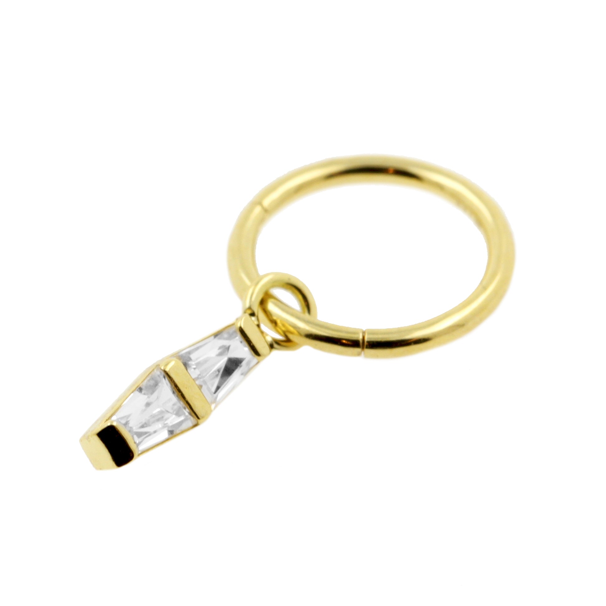 18 Karaats Gouden Click Ring Bedel - Zirkonia Double Trapezoid