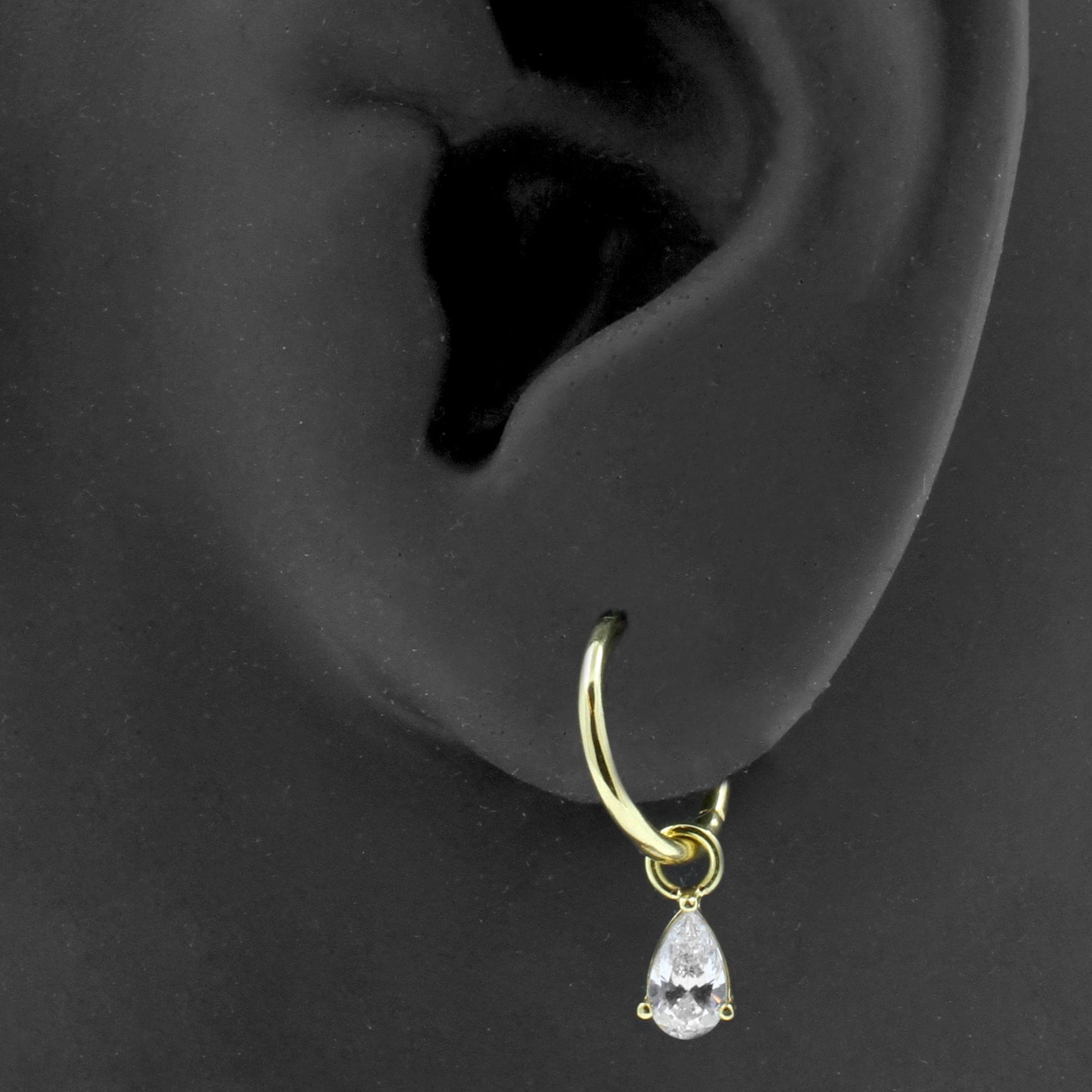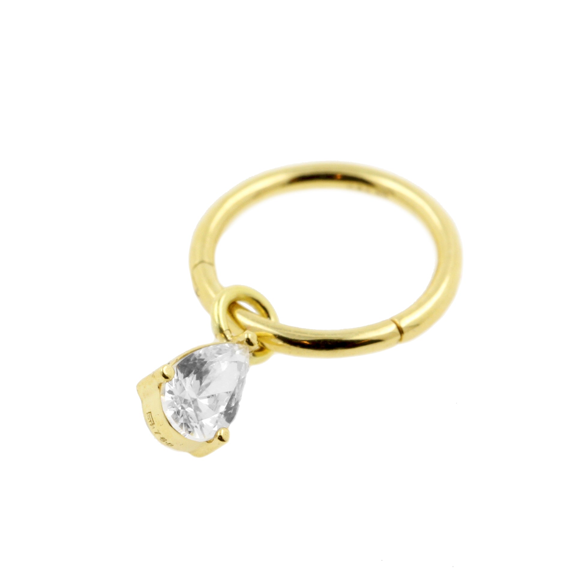18 Karaats Gouden Click Ring Bedel - Zirkonia Droplet Clear